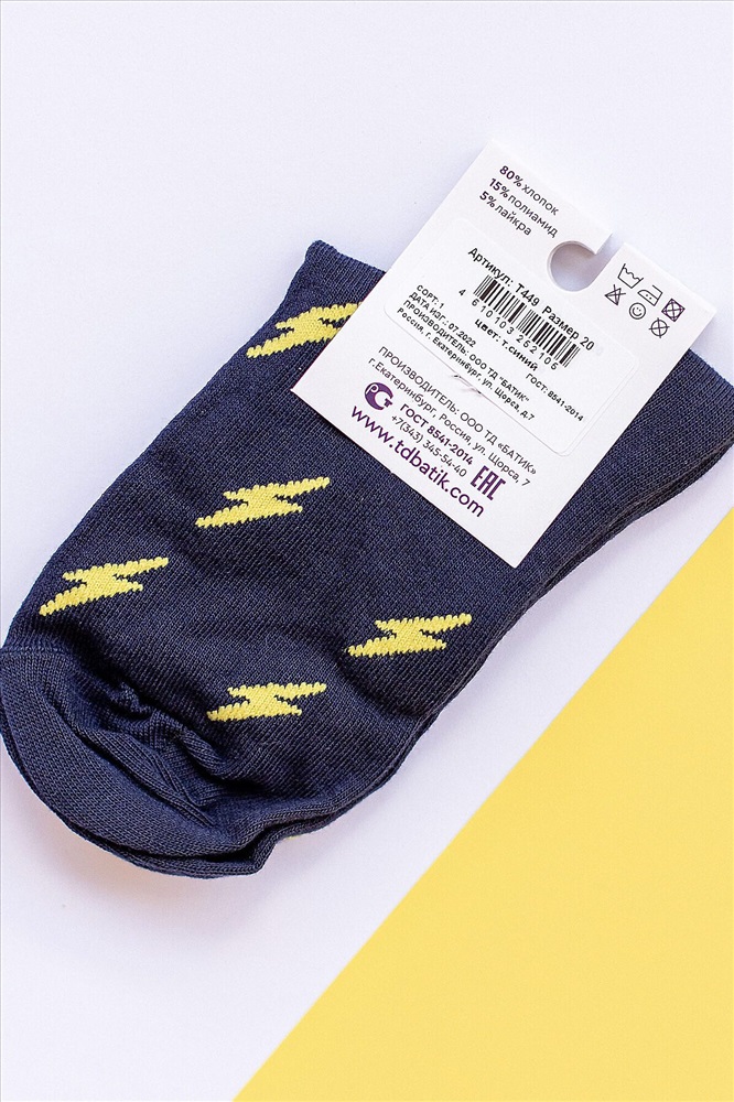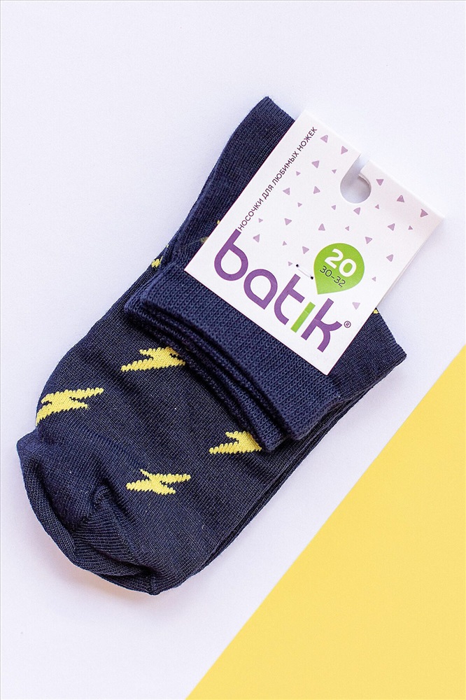 Носки для детей batik черные с рисунком в виде желтых молний. Представляем вам набор летних носков, которые станут отличным выбором для вашего ребенка! Носки изготовлены из высококачественного хлопка, который обеспечивает комфорт и приятное ощущение при ношении. Продаются упаковками по 6 пар.
