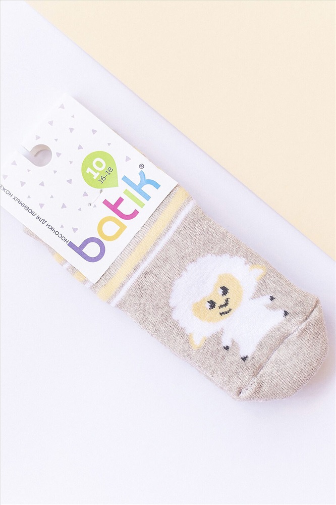 Носки для малышей трикотажные от batik бежевые с рисунком в виде овечки. Анатомическая резинка надёжно фиксирует носок на ступне, не сдавливая при этом ножку ребенка. Детские носочки подойдут в любое время года. Продаются упаковками по 6 пар.
