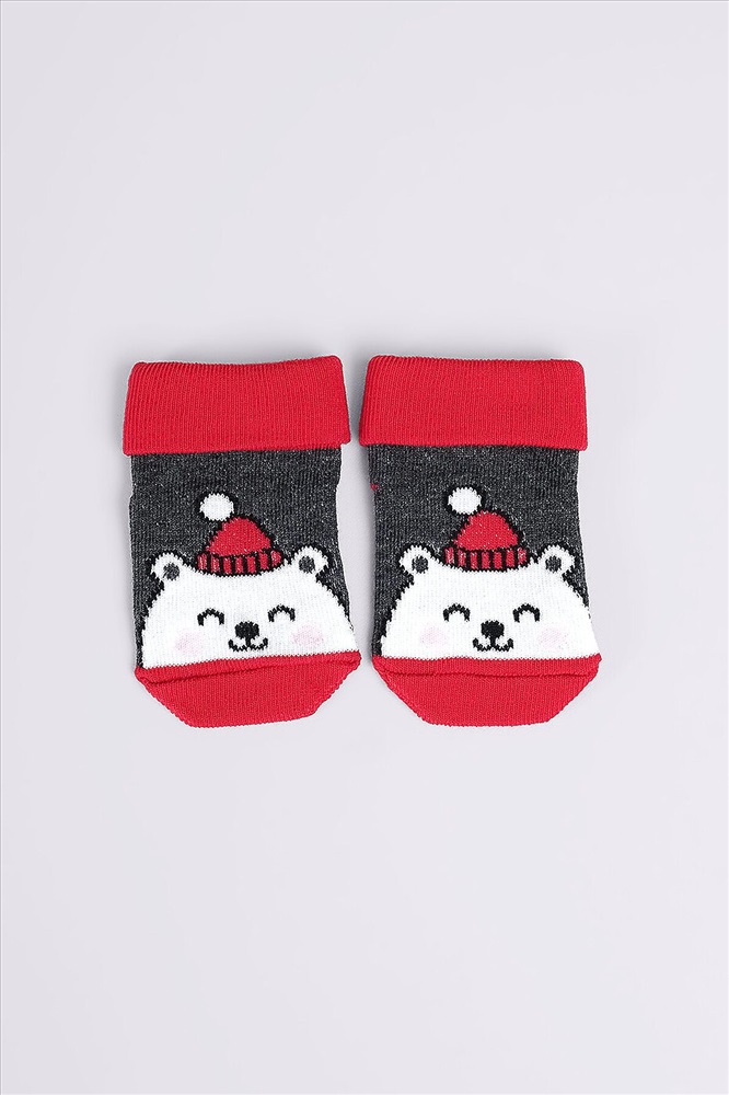 Новогодние носочки для новорожденного с медведем, одеты на маникен ножки Состав: 80% Хлопок, 18% Полиамид, 2% Эластан