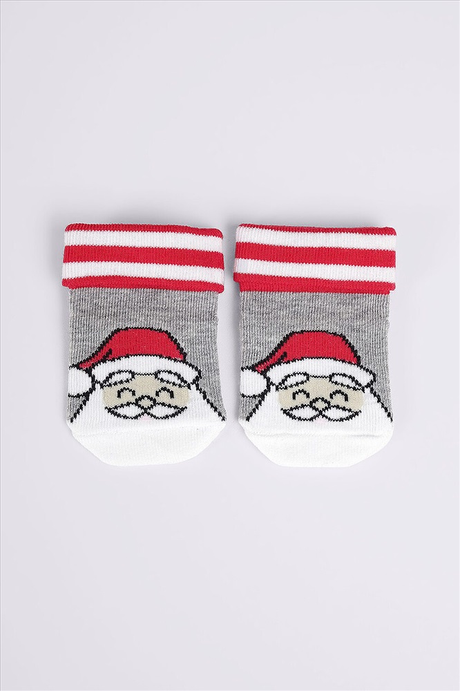 Новогодние носочки для новорожденного с дед морозом, одеты на маникен ножки Состав: 80% Хлопок, 18% Полиамид, 2% Эластан