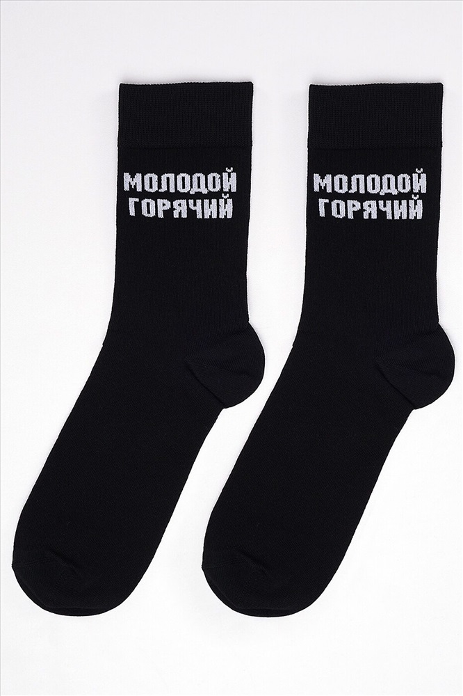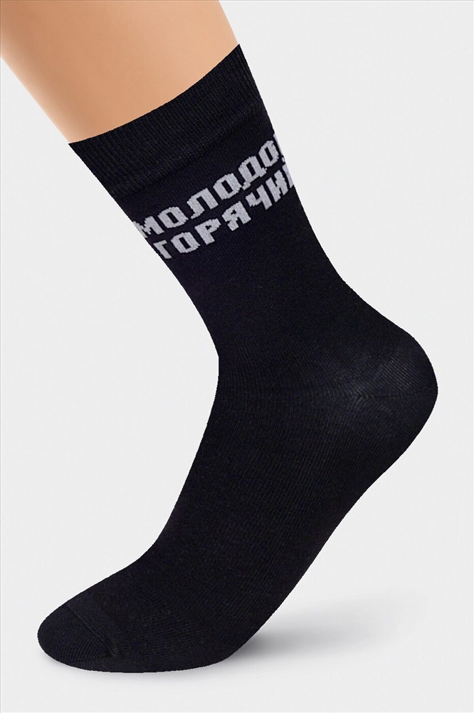 Мужские носки с надписью "Молодой, горячий". ТМ Эйс Состав: 70% Хлопок, 25% Полиамид, 5% Эластан