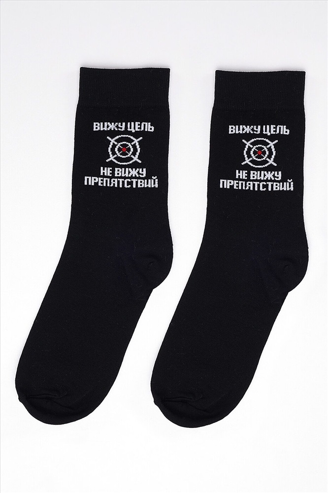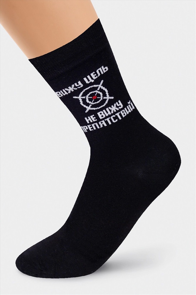 Мужские носки с надписью "Вижу цель, не вижу препятствий". Состав: 70% Хлопок, 20% Полиамид, 5% Эластан, 5% Люрекс
