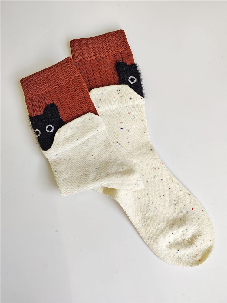 Серия интересных носков с имитацией 2х носков и котика вылезающего из 1го носка