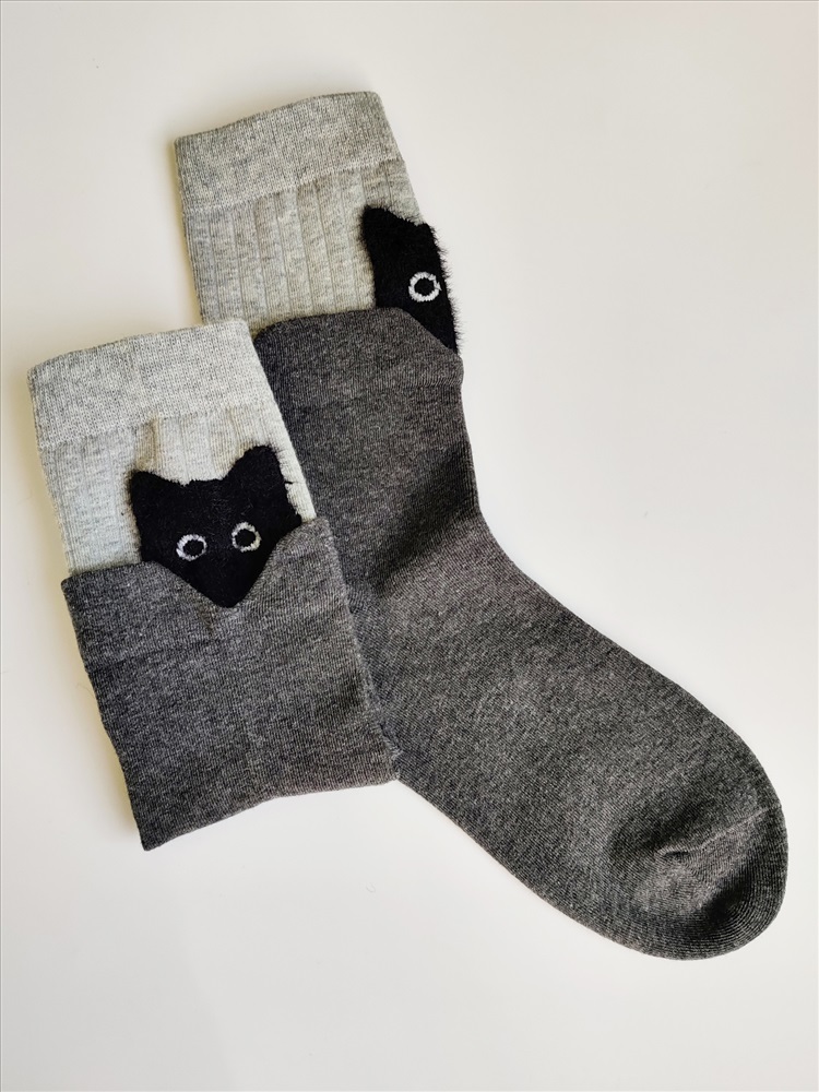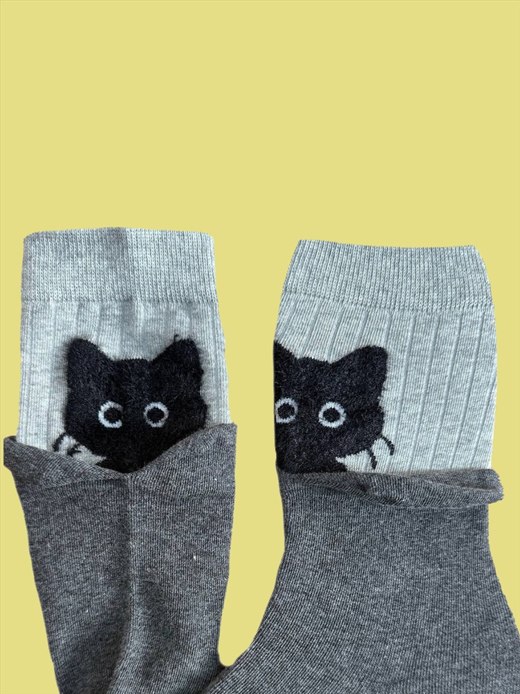 Серия интересных носков с имитацией 2х носков и котика вылезающего из 1го носка