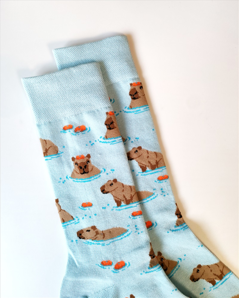 Цвет: Голубой; Вид изделия: Носки; Тип: Трикотажные; Узоры и принты: Абстрактный принт; Состав: 80% гребенный хлопок (1 сорт), 15% ПА, 5% эластан; Сезон: Всесезонные; Размер носков: 35-40