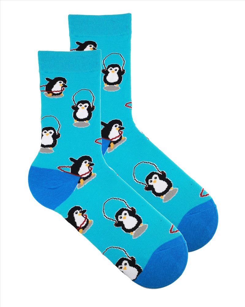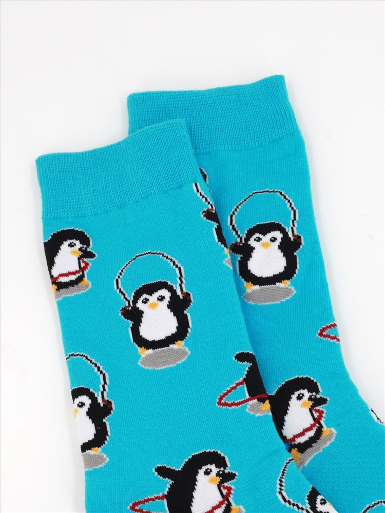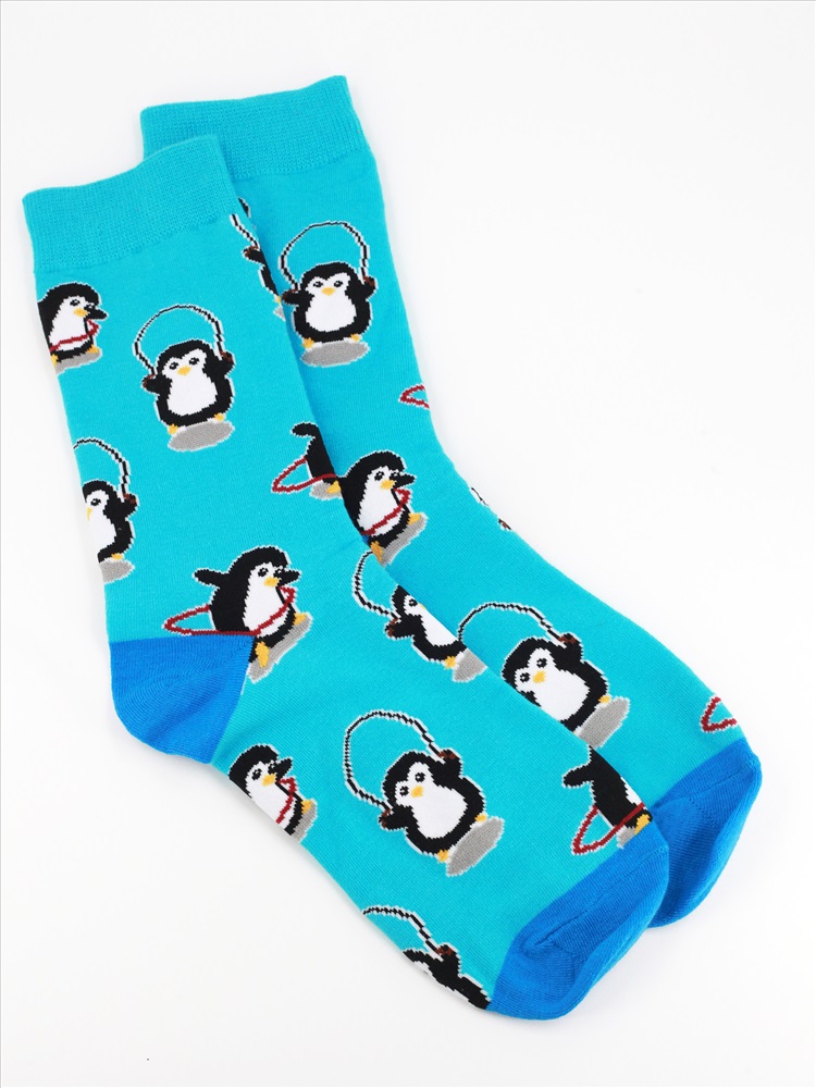 Забавные носки с принтом полненького пингвина со скакалкой и обручем