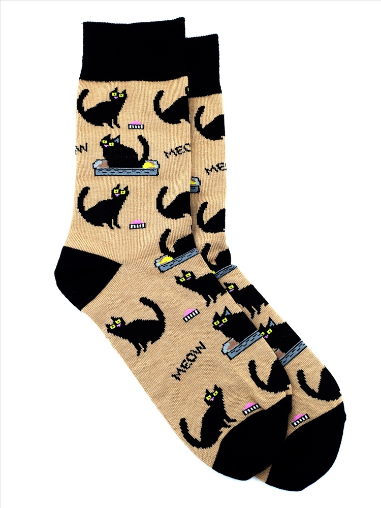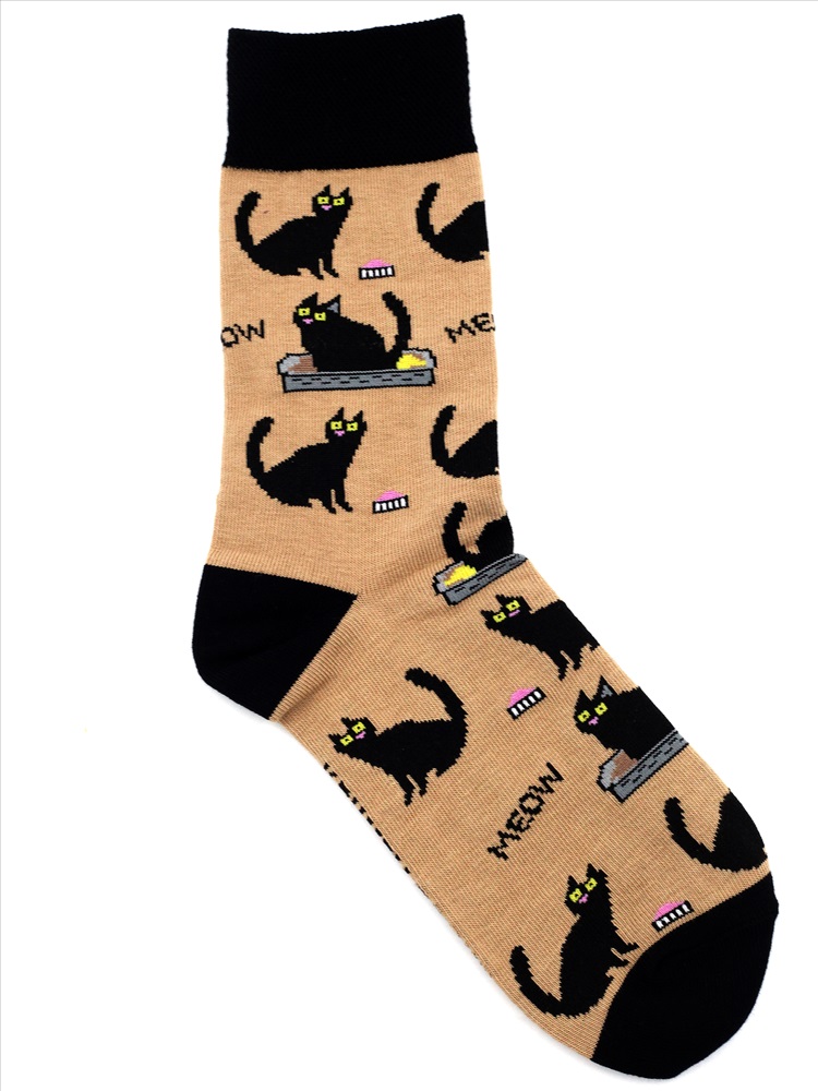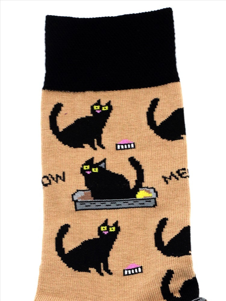 Прикольный принт: чёрный кот в лотке, с жёлтыми глазками