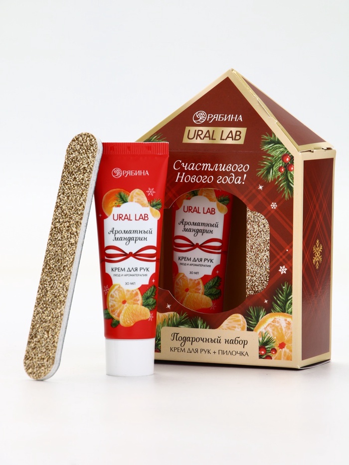 Производитель: URAL LAB; Габариты: 5 x 9,5 x 14,5; Страна: Россия; В боксе: 96 набор; Состав: См. на упаковке; Материалы: см. на упаковке; Фасовка: по 1 набор; Индивидуальная упаковка: Плёнка; Сертификат: ЕАС; Для кого: Для женщины; В наборе, шт.: 2; Вид упаковки: Подарочная коробка; Тематика праздника: Новый год; Адресат: Без адресата; Возраст: Взрослый; Аромат: Мандарин; Составляющие набора: Пилка, Крем для рук; Возраст: Для взрослых
