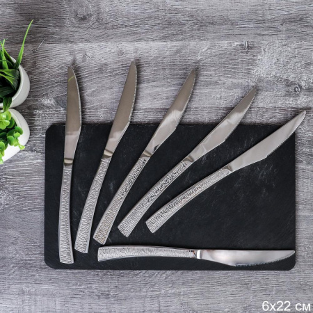 Нож столовый 6 штук Серебро Арабеск Глянец / MJ0201 /уп 100/