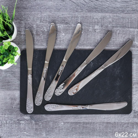 Нож столовый 6 штук Серебро Кантата Глянец / MJ3284 /уп 100/