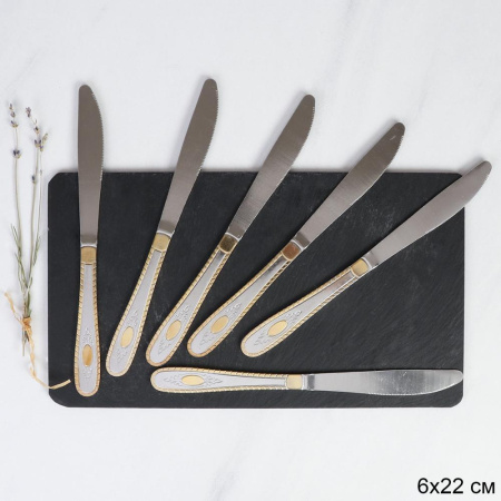 Нож столовый 6 штук Золото Маэстро / MJT15-1 /уп 100/