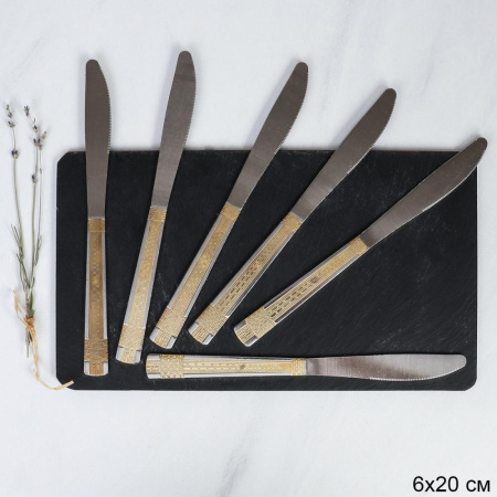 Нож столовый 6 штук Золото Вальтер / MJSP05-1 /уп 100 /
