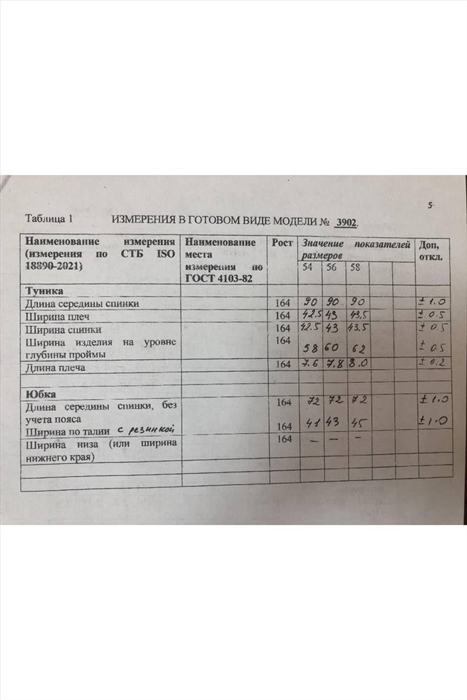 Туника: длина спинки – 90см.