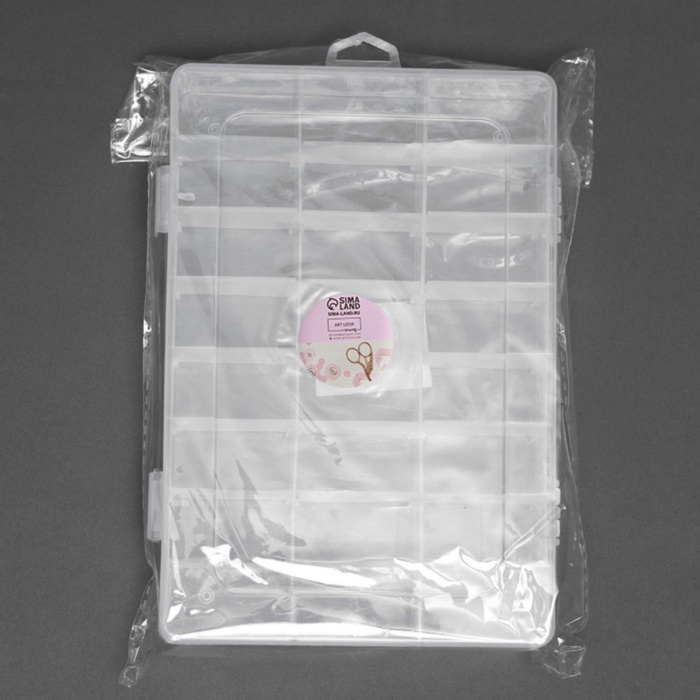 Производитель: QF; Габариты: 19,5 x 14 x 3,5; Страна: Китай; В боксе: 96 шт; Состав: Пластик; Материалы: пластик; Фасовка: по 1 шт; Индивидуальная упаковка: Пакет (БОПП, полиэтилен, ПВХ, дой-пак); Габариты товара: 19,5 см × 13,5 см × 3,5 см; Сертификат: СТР; Набор: Нет; Цвет: Прозрачный; Длина, см: 19,5; Ширина, см: 13,5; Высота, см: 3,5; Количество секций: 24; Материал: Пластик; Назначение: Для домашних мелочей; Назначение: Универсальные; Особенности: Передвижные ячейки; Составляющие: Контейнер; Особенности: Передвижные ячейки; Назначение: Для мелочей