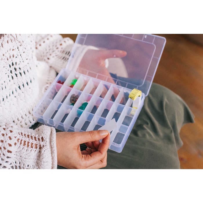 Рукодельницы оценят удобство хранения пайеток, бусин, ракушек и других миниатюрных элементов. А в домашнем офисе такие контейнеры помогут держать в порядке скрепки, кнопки, батарейки и прочие мелочи.