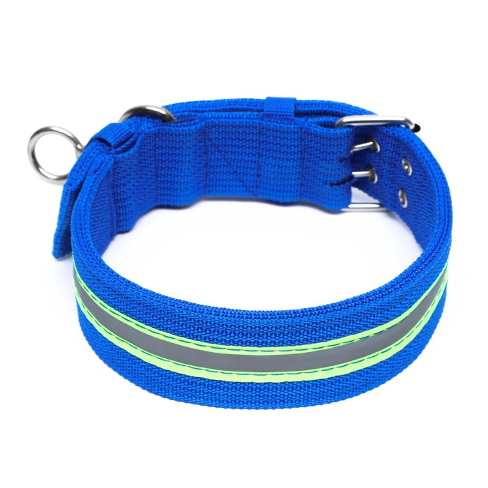 • Синий цвет ошейника не только стильно выглядит, но и хорошо сочетается с шерстью крупных собак