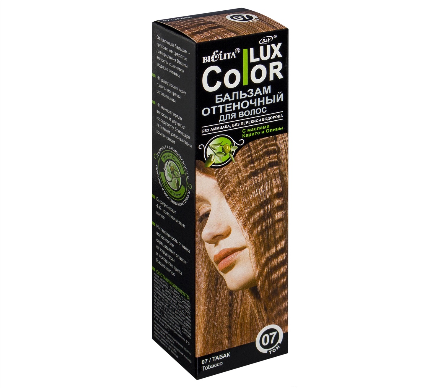 Бренд: Белита; Изготовитель: СП "Белита" ООО, Республика Беларусь, 220089, г. Минск, ул. Декабристов, 29а; Оттенок: 07, табак; Производитель: Белита; Свойства: Без аммиака, с натуральными маслами; Серия: Color Lux; Упаковка: Коробка