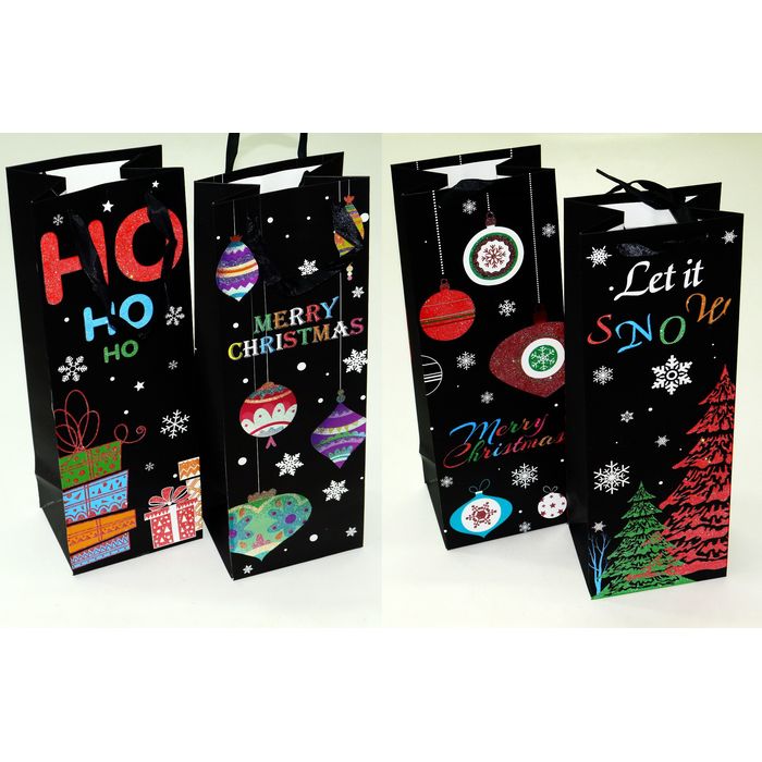 Пакеты подарочные д/бутылки Let it Snow XY-657 УПАКОВКА 12шт (1шт=30р, 12.5*34.5*10 см)