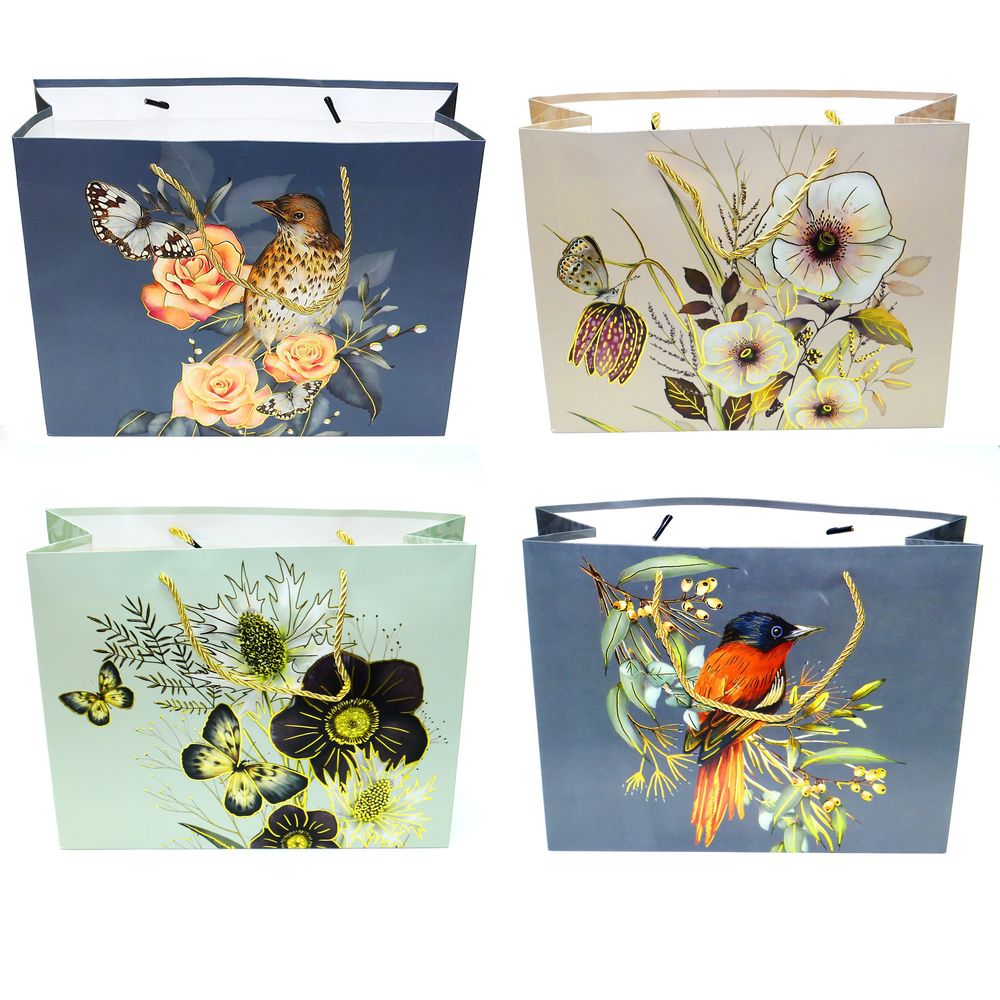 Пакеты подарочные Птицы, Бабочки, Цветы 4вида УПАКОВКА 12шт (32*26*11 см) QZHZD-614B-2