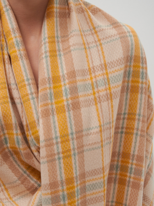 Состав: Шерсть 25%, вискоза 30%, модал 45% Состав: Вискоза, Шерсть, Модал Цвет: Бежевый, Желтый, Молочный, Персик, Серый Размер: 65 x 180 см Сезон: Осень, Зима Принт: Клетка Большой, мягкий, теплый двусторонний палантин с рисунком в стиле арт-деко. Края изделия украшены кистями. Только ручная стирка. Комментарии к товару