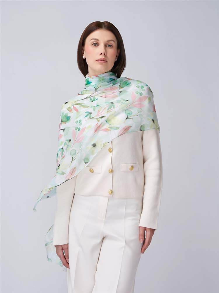 Цвет: Зеленый, Розовый Состав: 55% полиэстер, 35% вискоза, 10% шелк Состав: Вискоза, Полиэстер, Лиоцелл Размер: 70 x 180 см Принт: Абстракция, Переход тона Сезон: Осень, Весна Большой, мягкий, тонкий и очень нежный палантин с рисунком. Только ручная стирка. Комментарии к товару