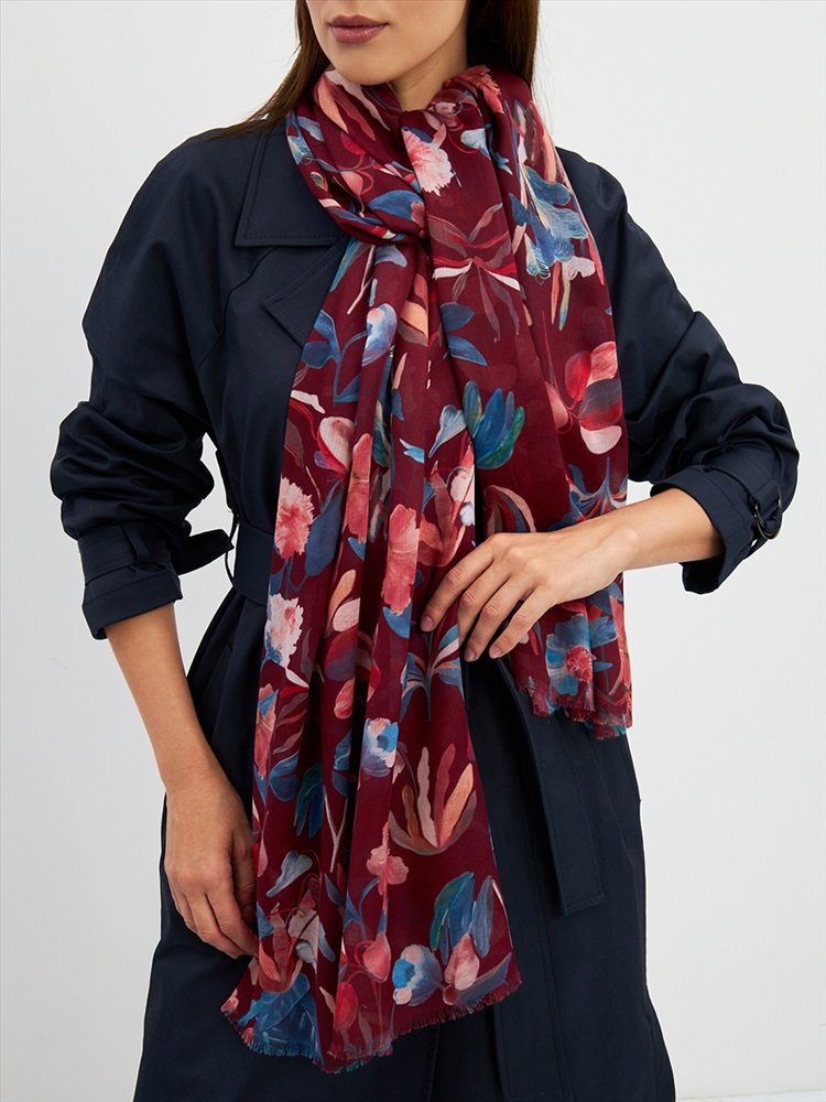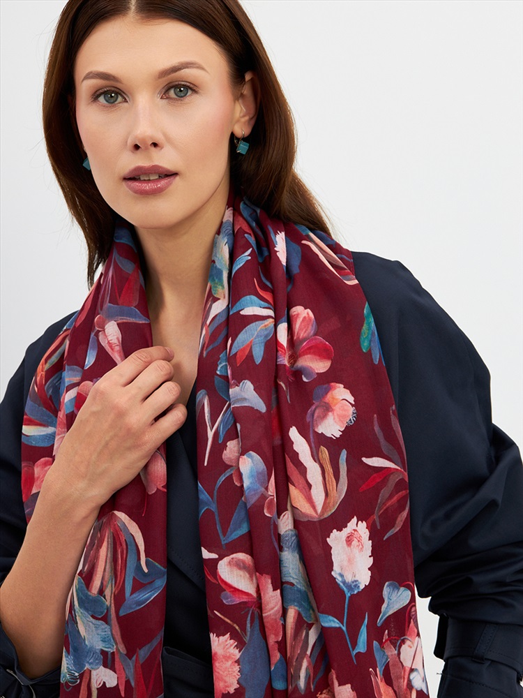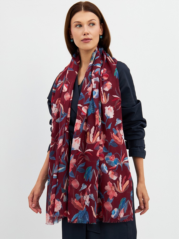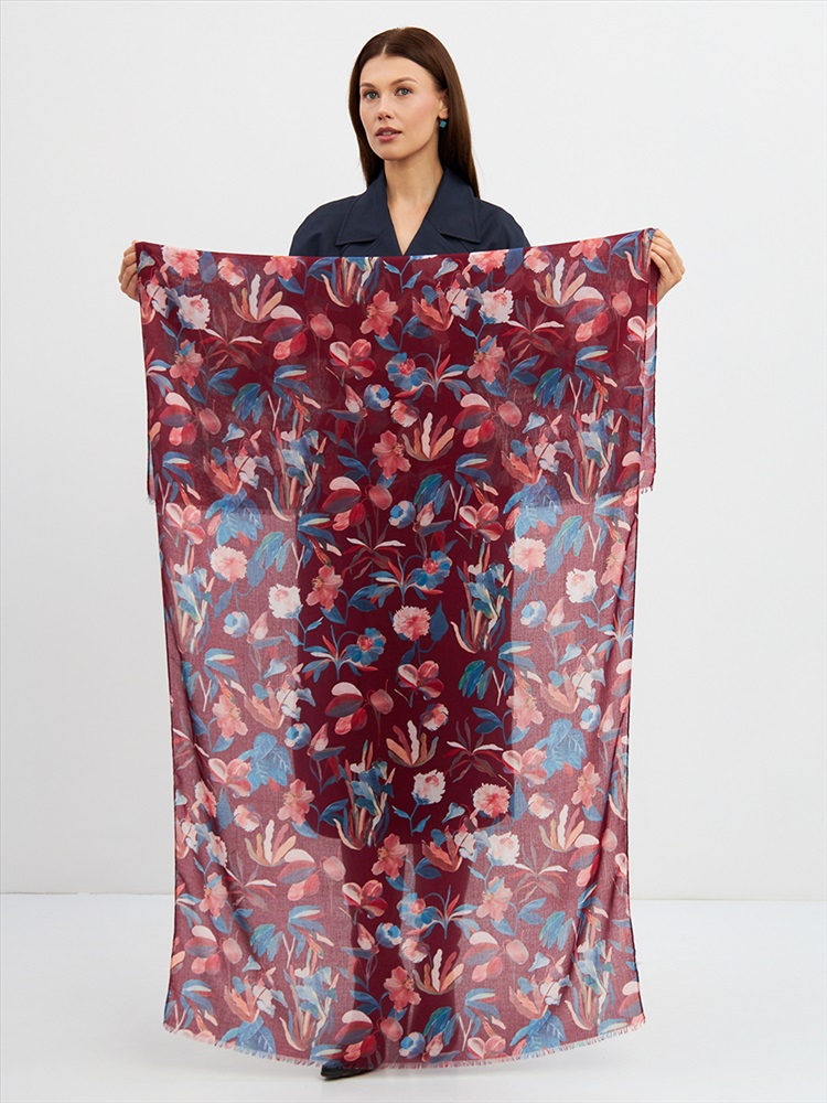 Цвет: Бордовый, Розовый, Синий Размер: 80 x 180 см Состав: 55% полиэстер, 35% вискоза, 10% шелк Состав: Вискоза, Полиэстер, Шелк Принт: Цветочный Большой, мягкий, тонкий и очень нежный палантин с рисунком. Края изделия украшены бахромой ручной работы. Машинная деликатная стирка. Комментарии к товару
