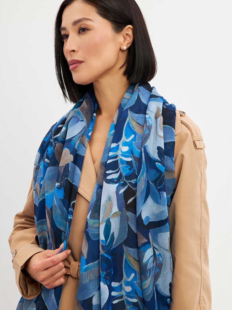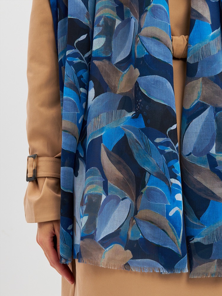 Цвет: Серый, Синий Размер: 80 x 180 см Состав: 55% полиэстер, 35% вискоза, 10% шелк Состав: Вискоза, Полиэстер, Шелк Принт: Цветочный Большой, мягкий, тонкий и очень нежный палантин с рисунком. Края изделия украшены бахромой ручной работы. Машинная деликатная стирка. Комментарии к товару