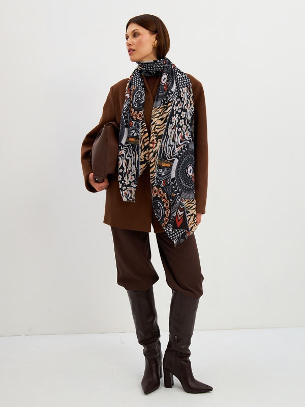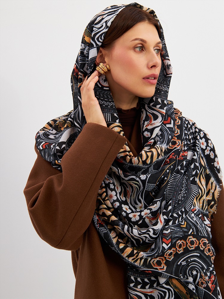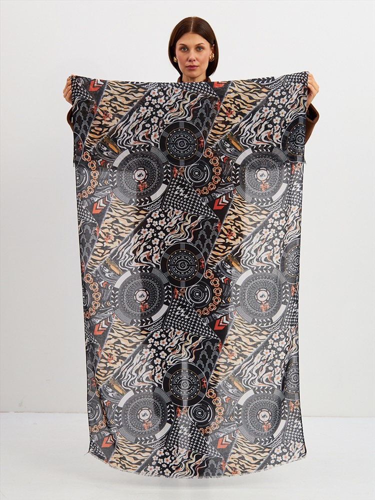 Цвет: Бежевый, Белый, Черный Размер: 80 x 180 см Состав: 55% полиэстер, 35% вискоза, 10% шелк Состав: Вискоза, Полиэстер, Шелк Принт: Абстракция Большой, мягкий, тонкий и очень нежный палантин с рисунком. Края изделия украшены бахромой ручной работы. Машинная деликатная стирка. Комментарии к товару