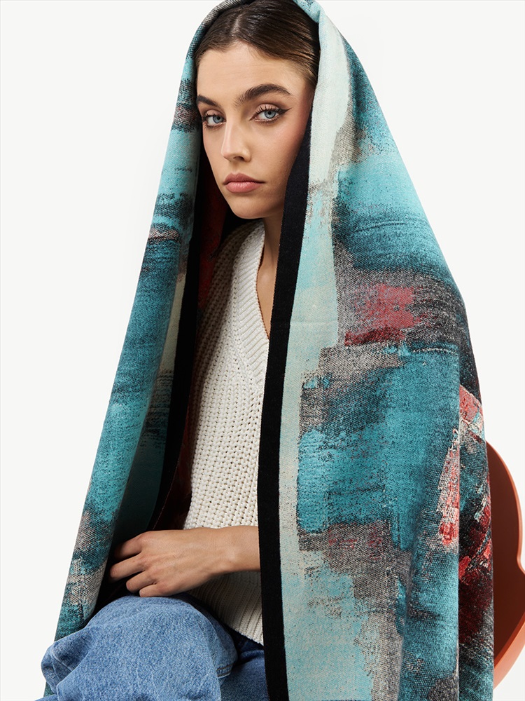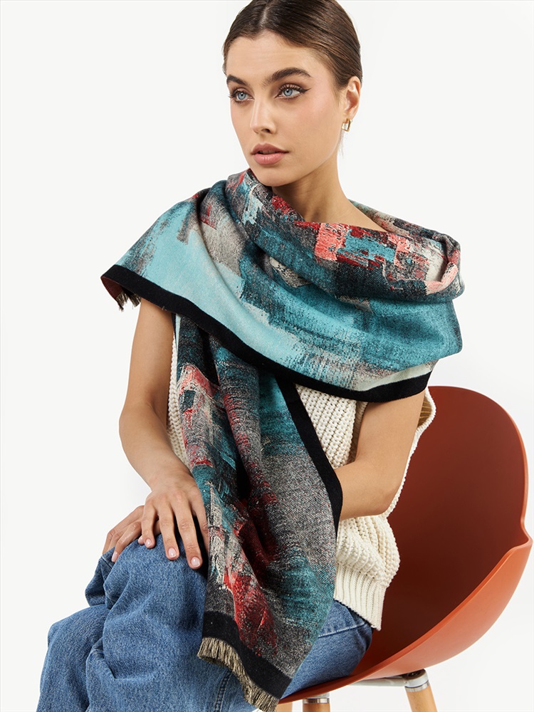 Цвет: Бирюзовый Состав: 65% вискоза, 20% шерсть, 15% кашемир Состав: Вискоза, Шерсть, Кашемир Принт: Абстракция Размер: 75 х 180 см Сезон: Осень, Зима Стиль: Повседневный Большой, мягкий, теплый однотонный двусторонний палантин. Только ручная стирка. Комментарии к товару