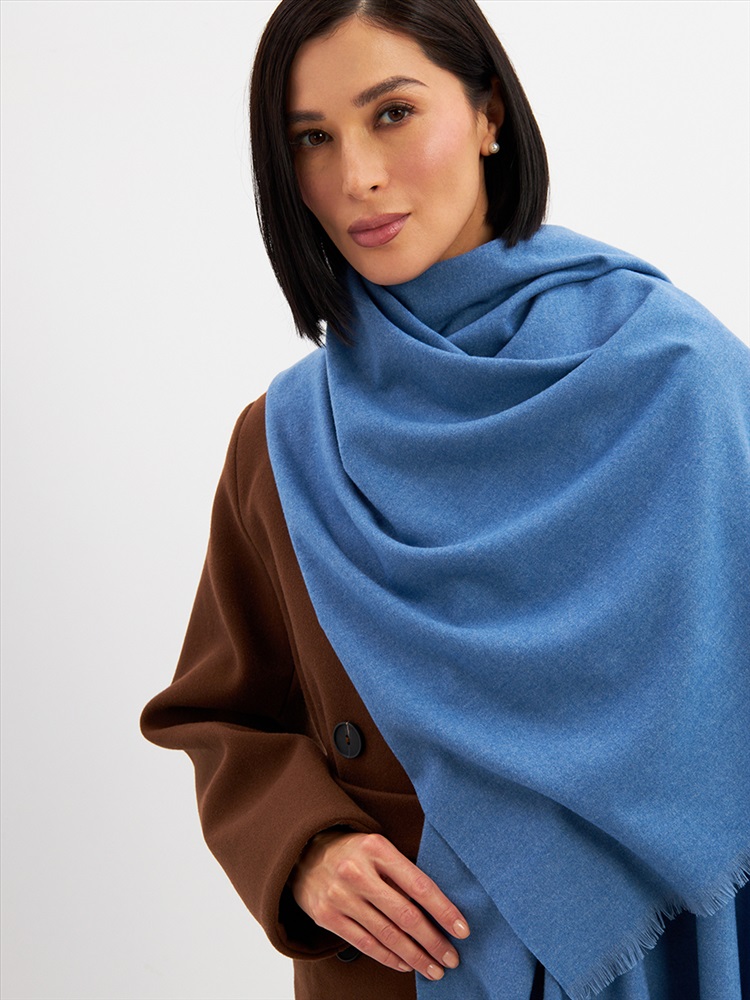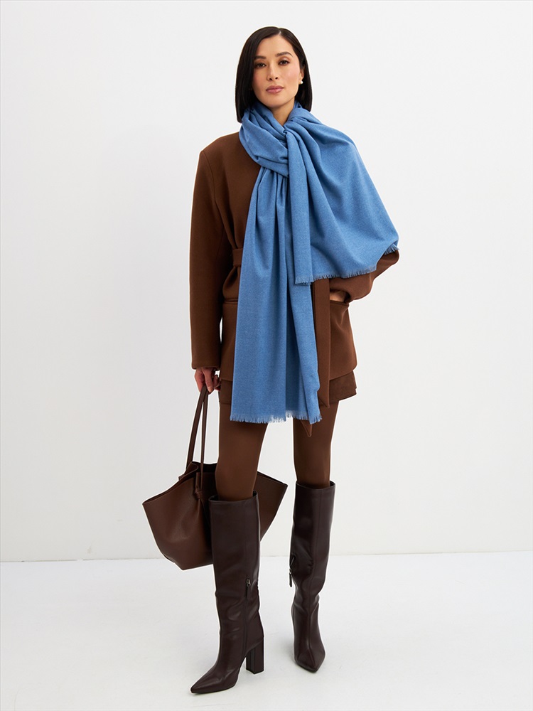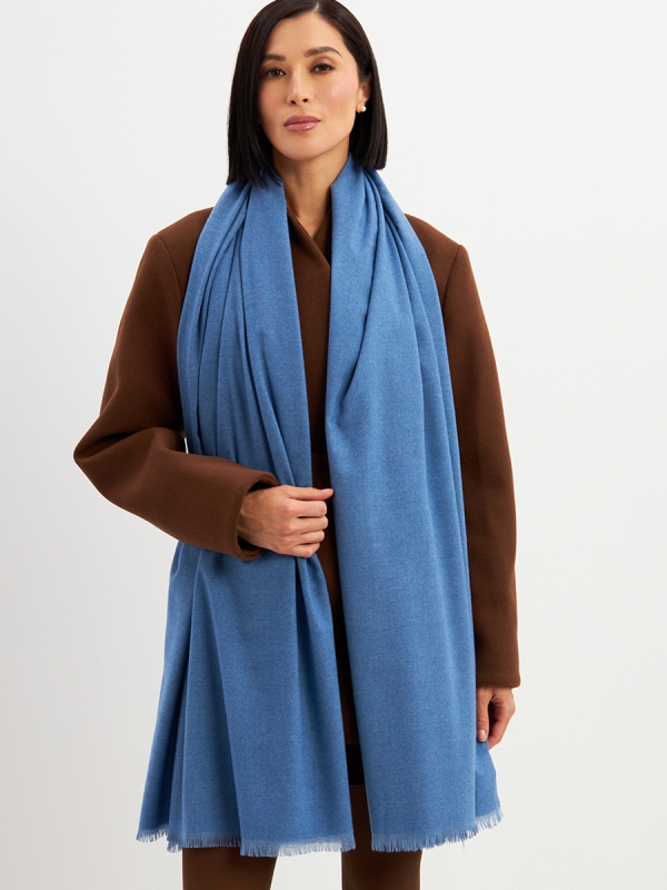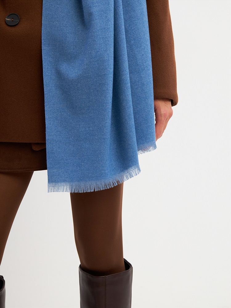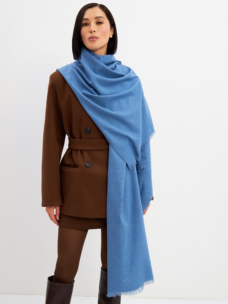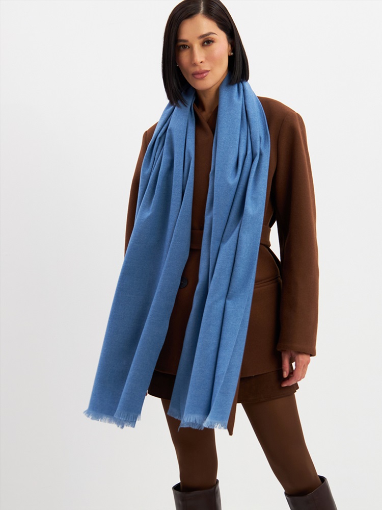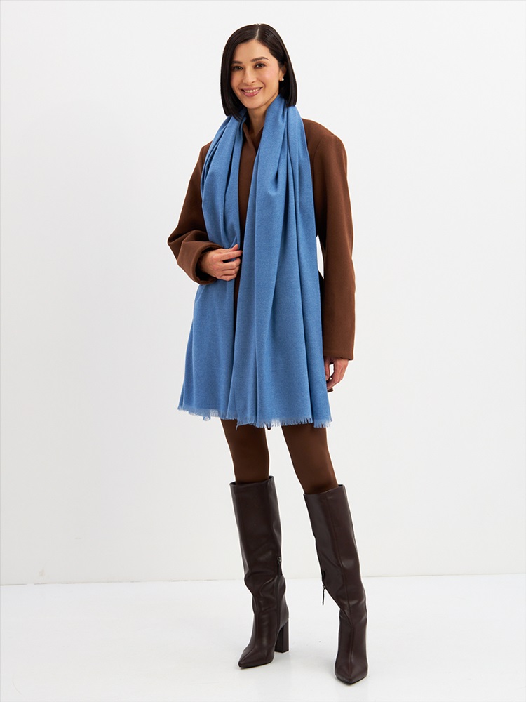 Большой, мягкий, теплый двусторонний однотонный палантин. Края изделия украшены бахромой. Машинная деликатная стирка.