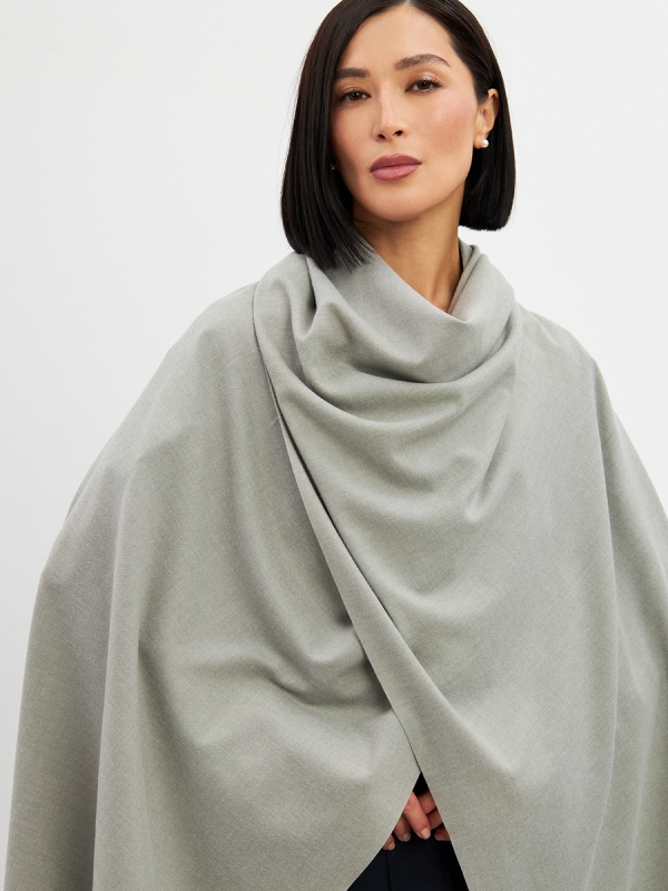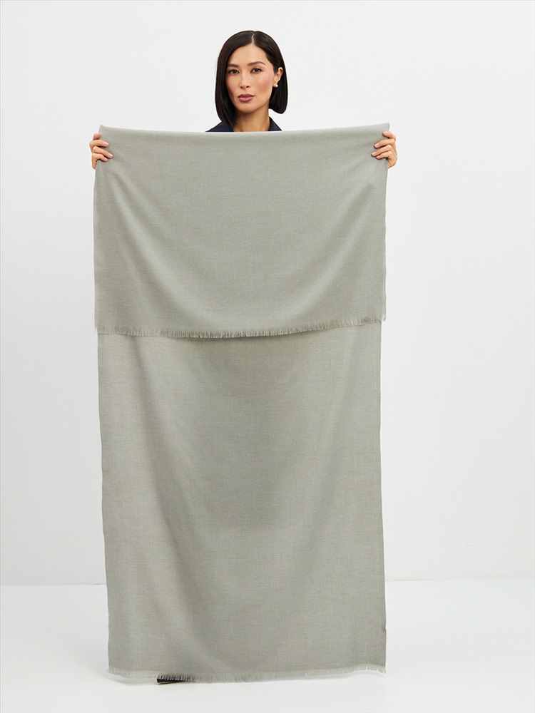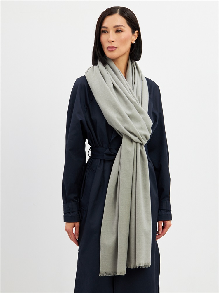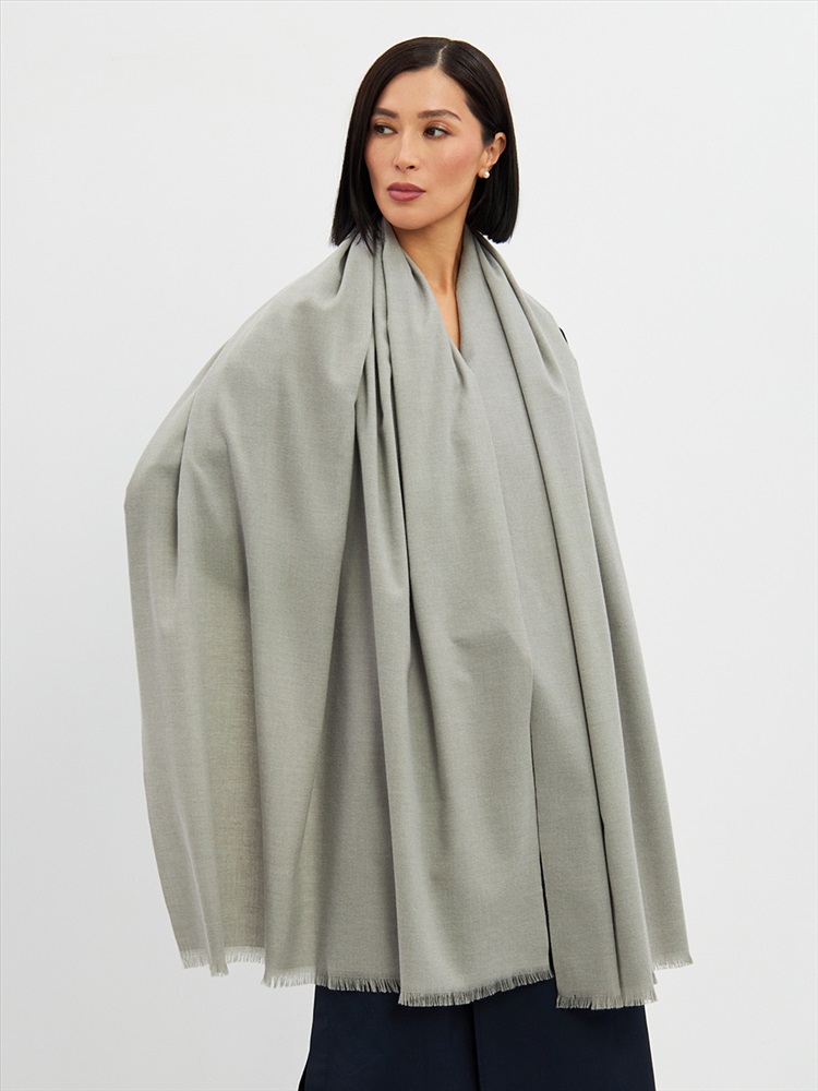 Большой, мягкий, теплый двусторонний однотонный палантин. Края изделия украшены бахромой. Машинная деликатная стирка.