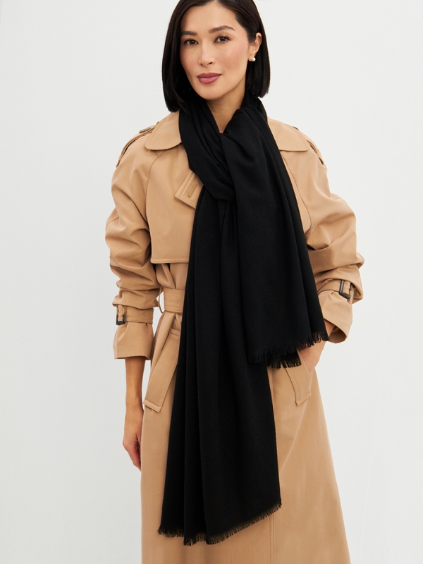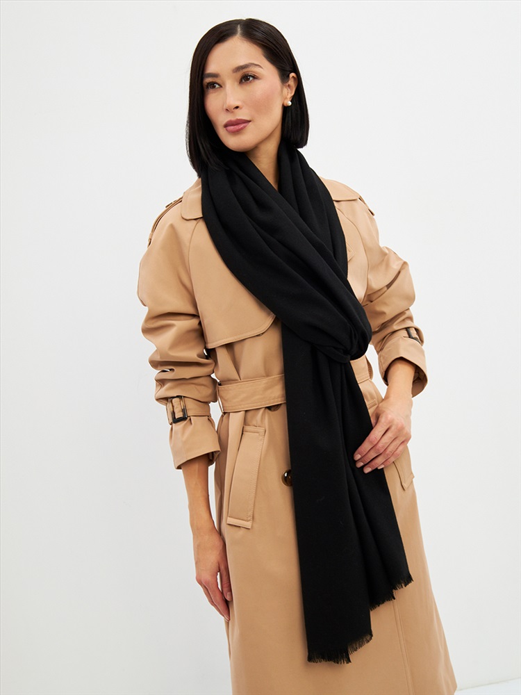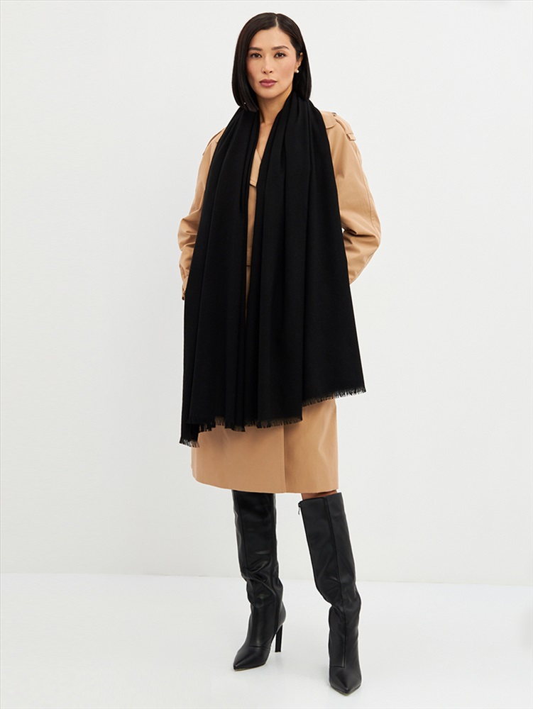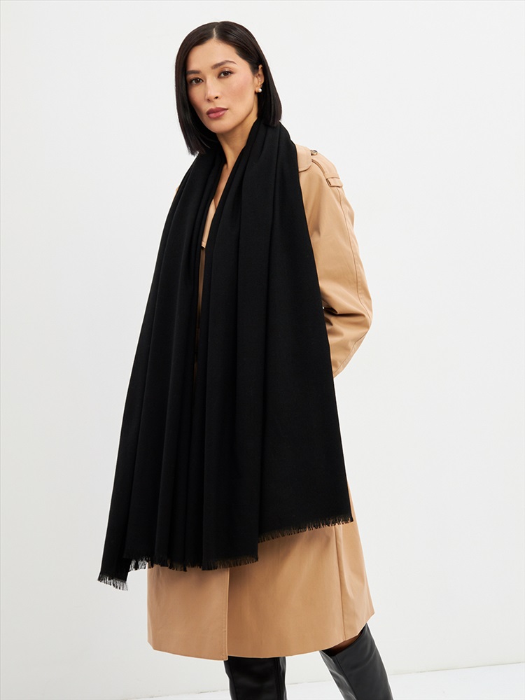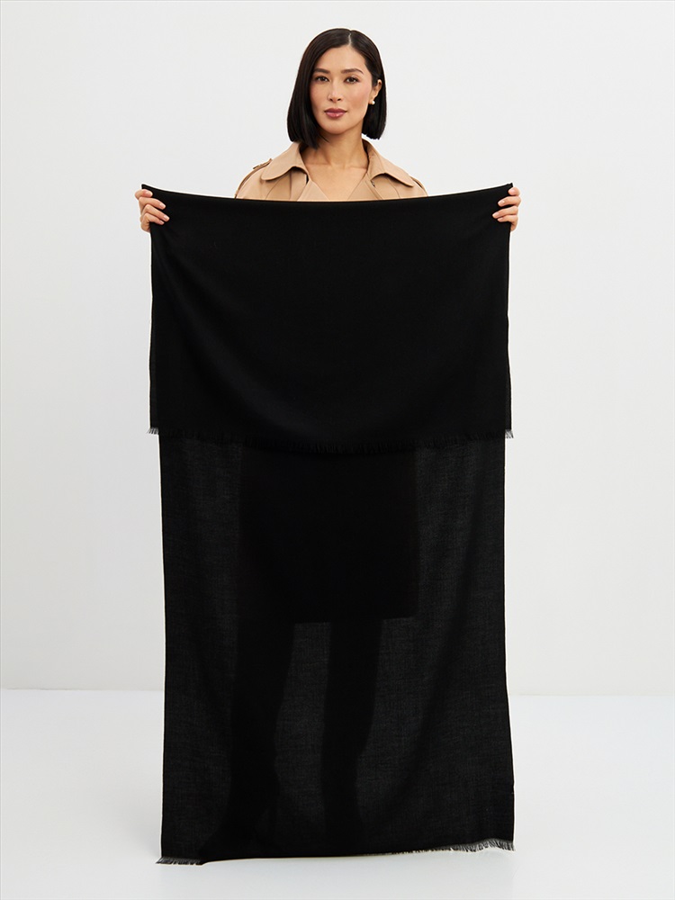 Цвет: Черный Состав: Вискоза, Шерсть, Модал Состав: Шерсть 20% Модал 45% Вискоза 35% Принт: Однотонный Большой, мягкий, теплый двусторонний однотонный палантин. Края изделия украшены бахромой. Машинная деликатная стирка. Комментарии к товару