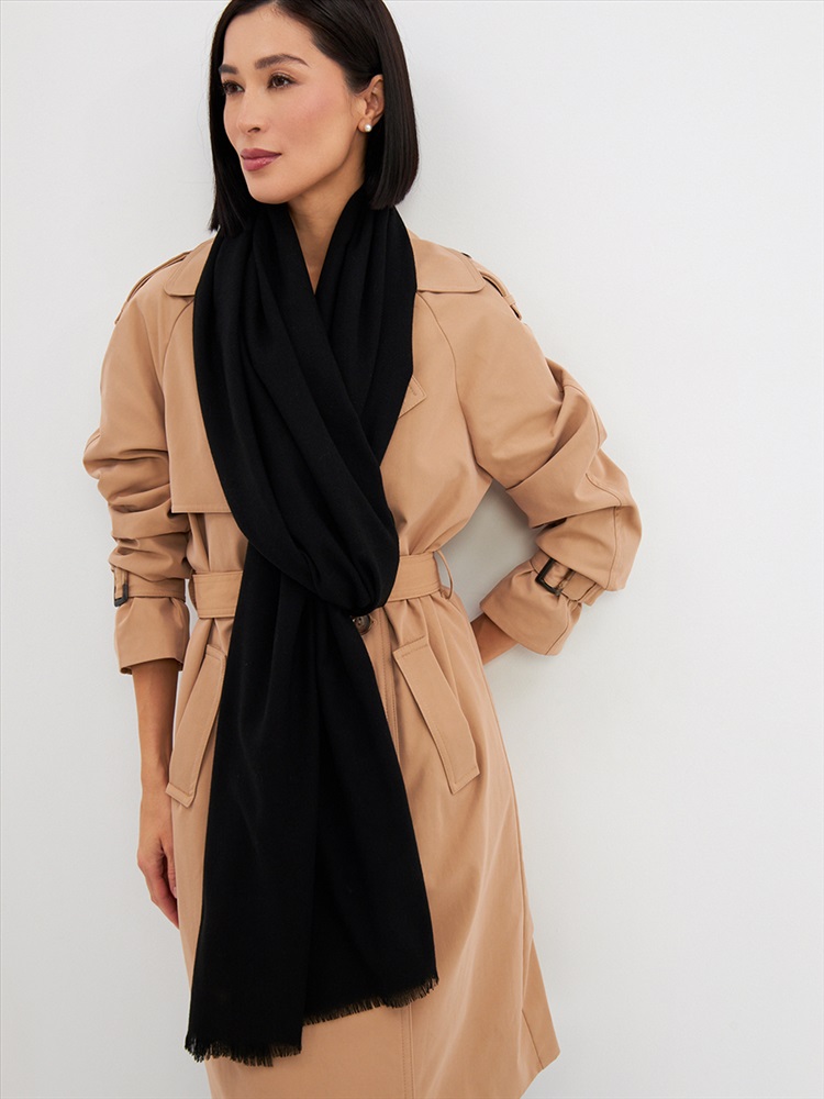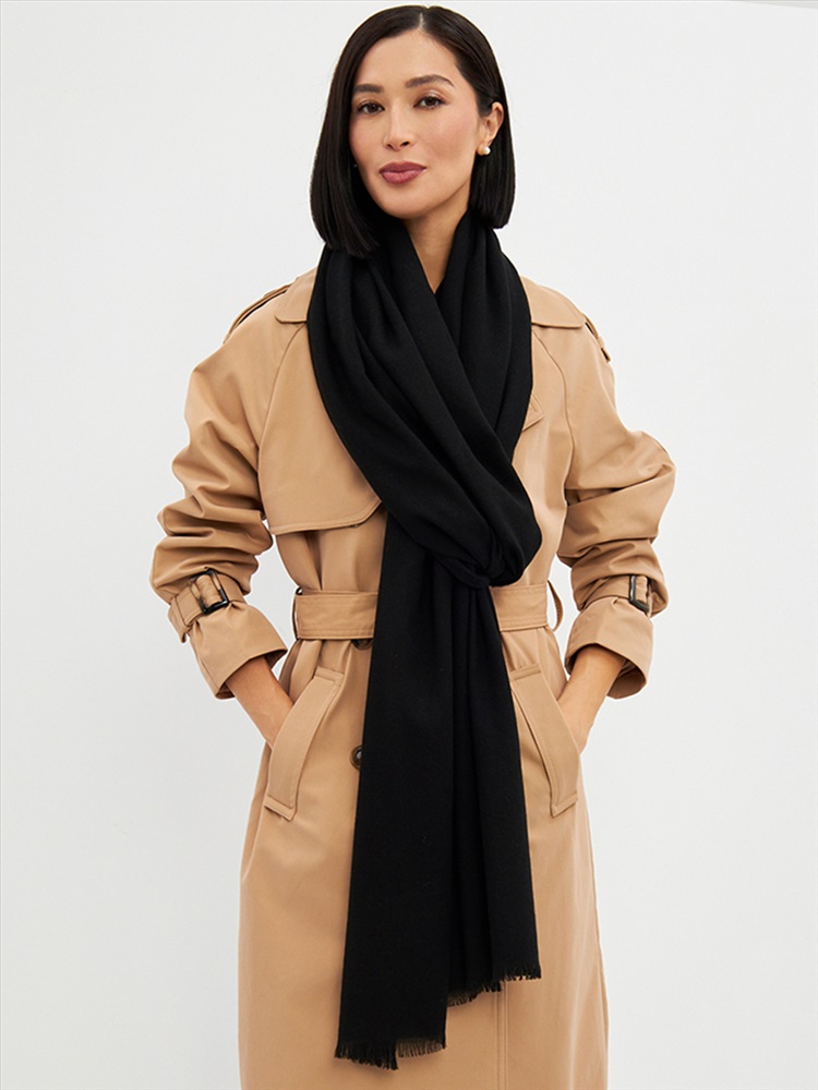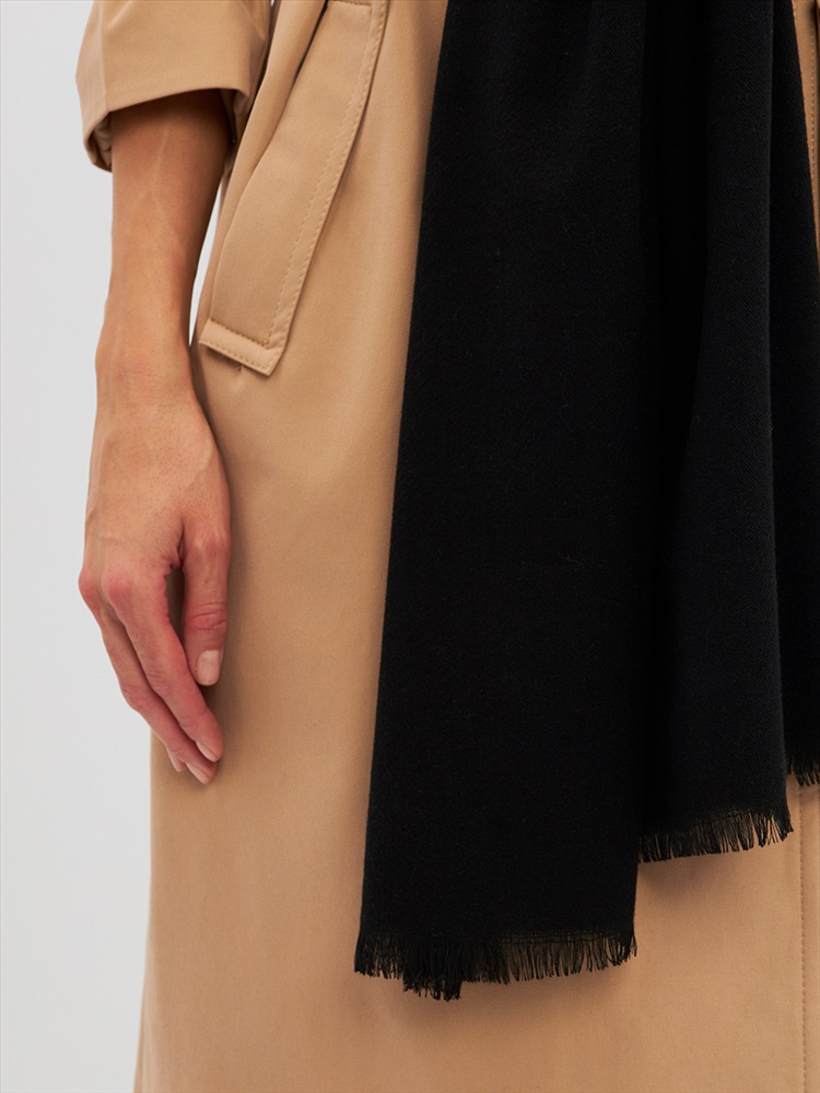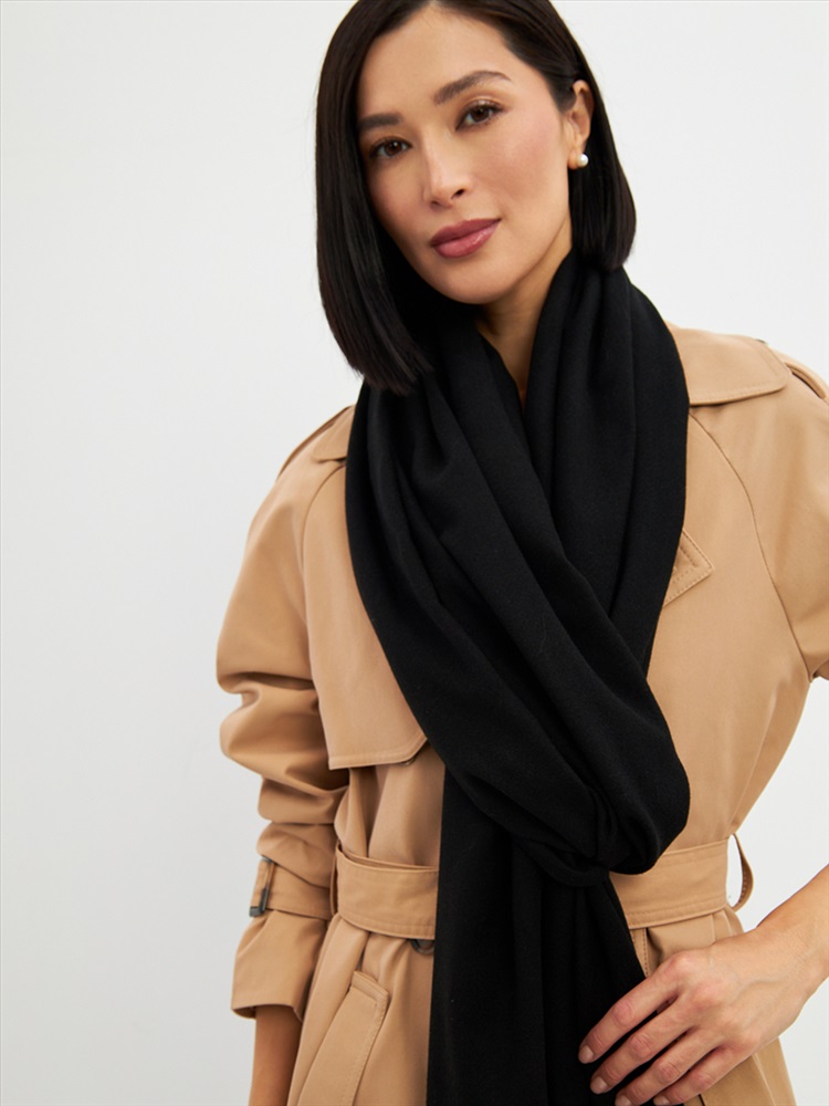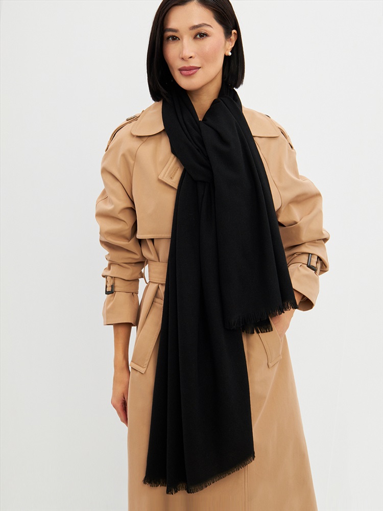 Цвет: Черный Состав: Вискоза, Шерсть, Модал Состав: Шерсть 20% Модал 45% Вискоза 35% Принт: Однотонный Большой, мягкий, теплый двусторонний однотонный палантин. Края изделия украшены бахромой. Машинная деликатная стирка. Комментарии к товару