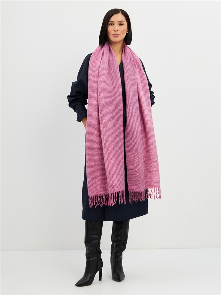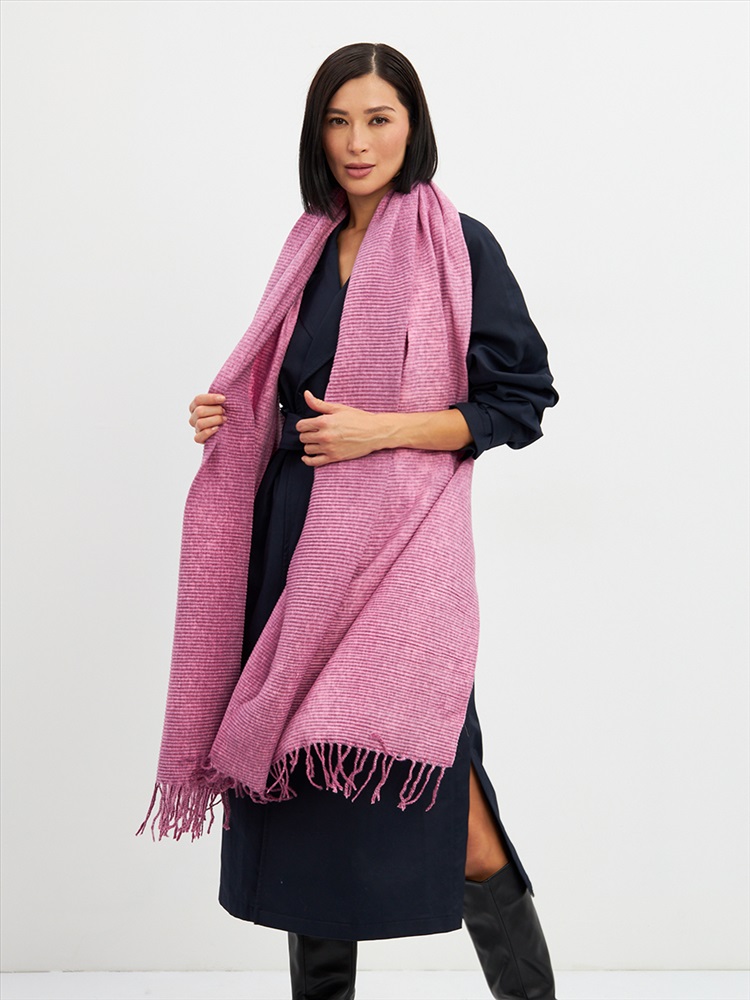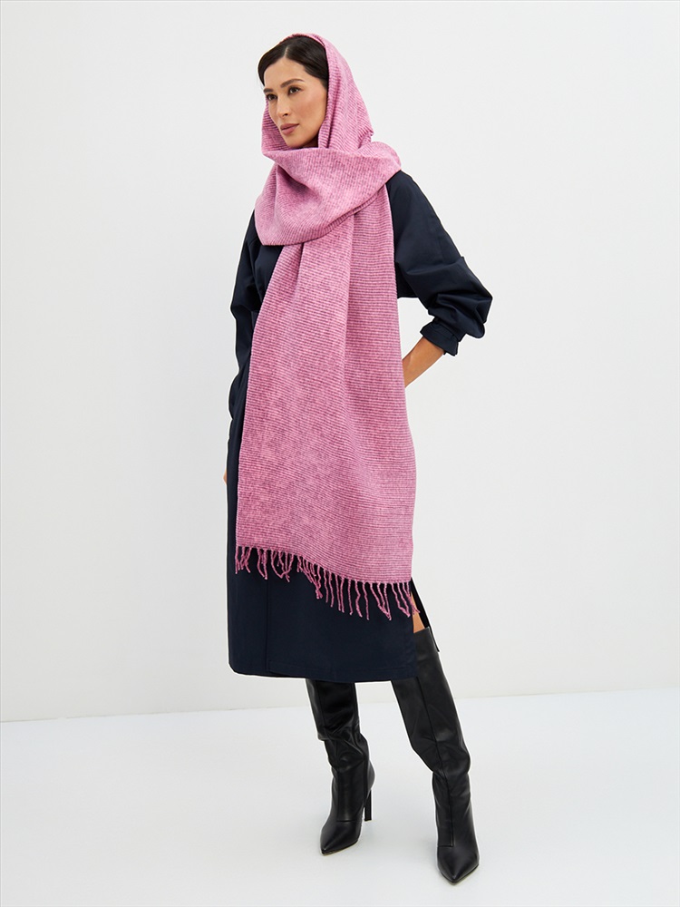 Цвет: Розовый, Фуксия Состав: Вискоза, Шерсть, Модал Состав: Шерсть 10% Модал 55% Вискоза 35% Принт: Однотонный, Меланж Большой, мягкий, теплый двусторонний однотонный меланжевый палантин. Края изделия украшены кистями. Машинная деликатная стирка. Комментарии к товару