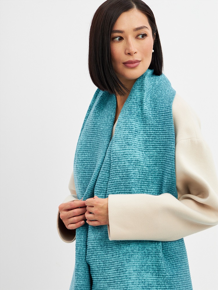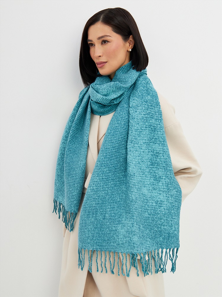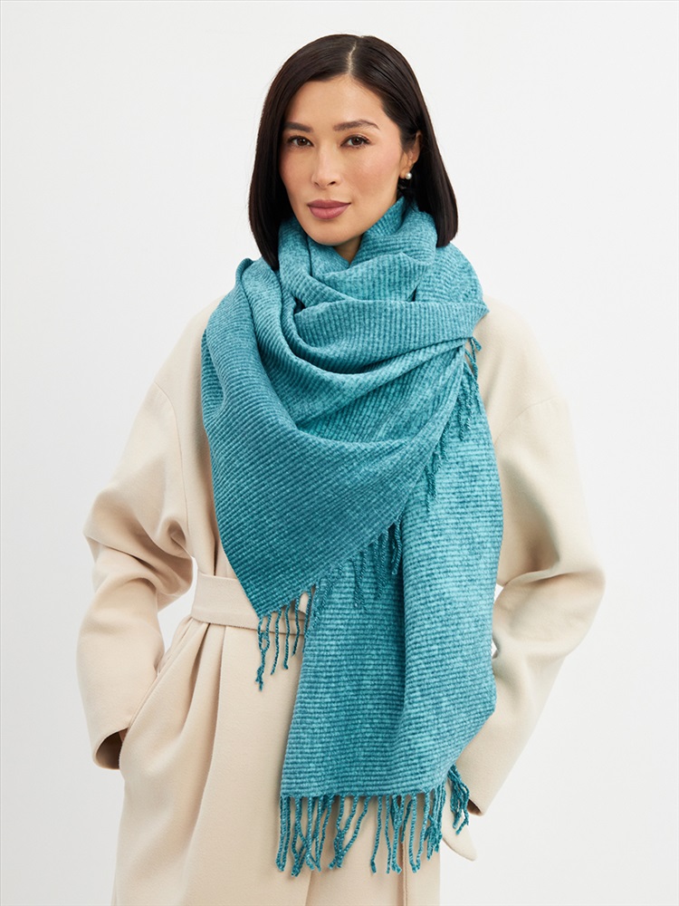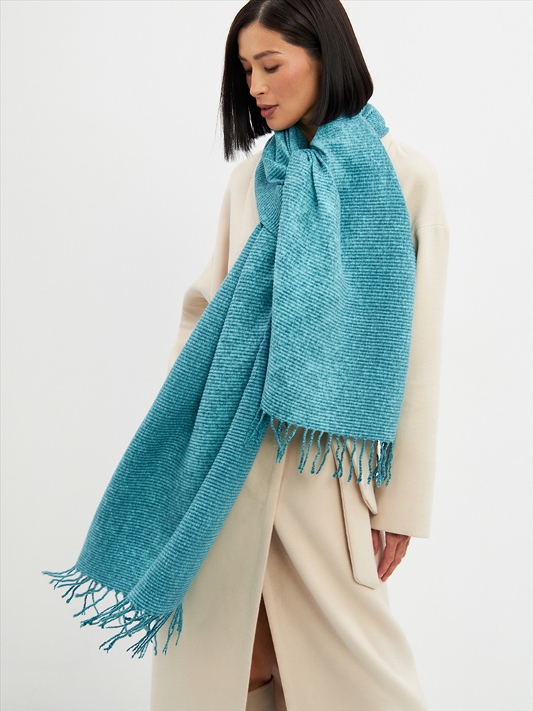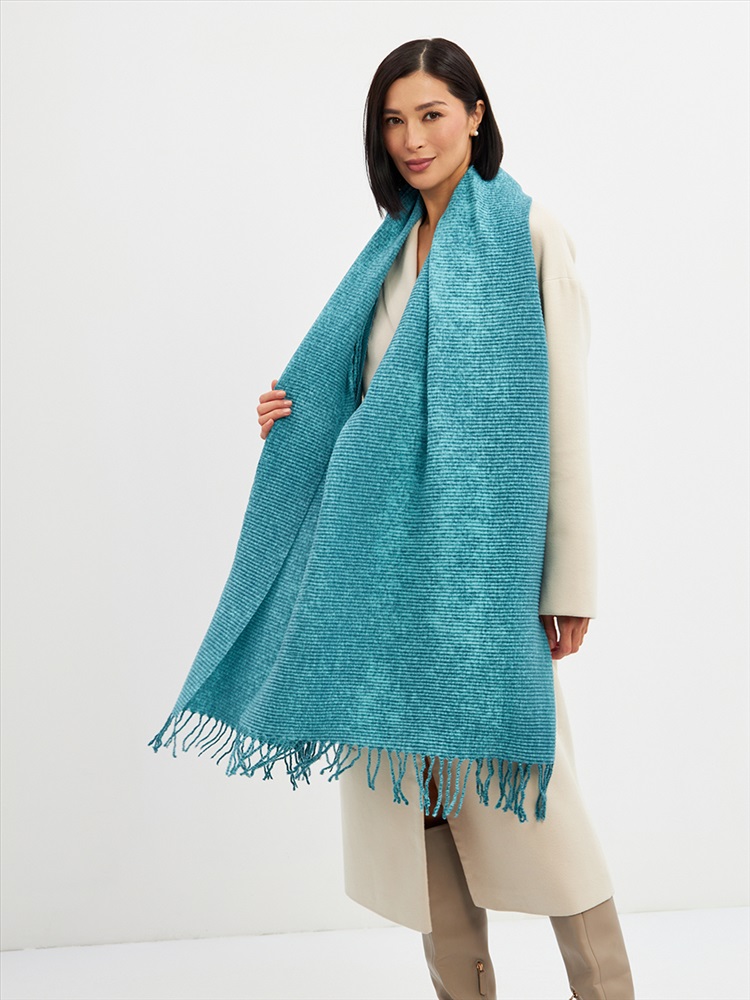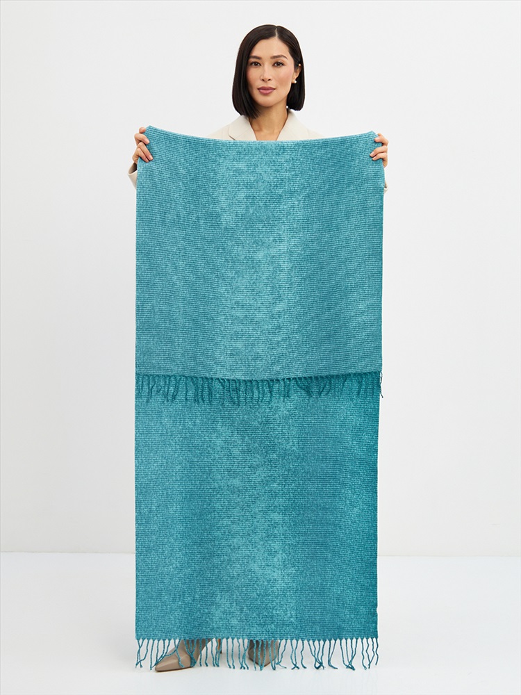 Большой, мягкий, теплый двусторонний однотонный меланжевый палантин. Края изделия украшены кистями. Машинная деликатная стирка.