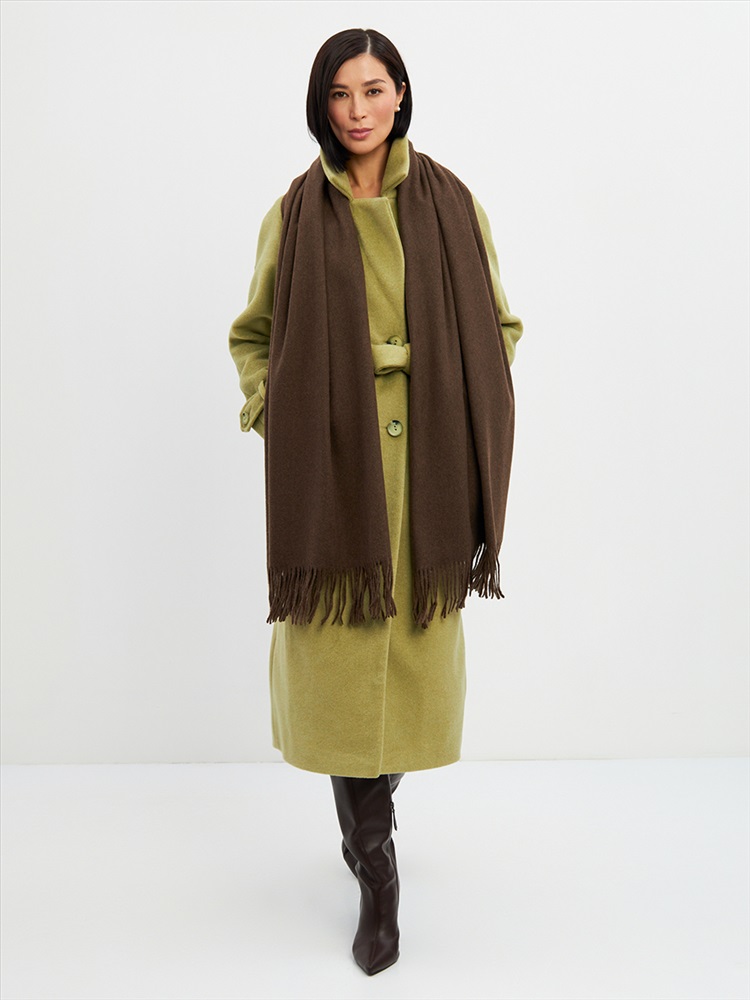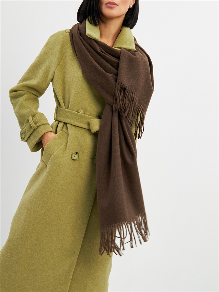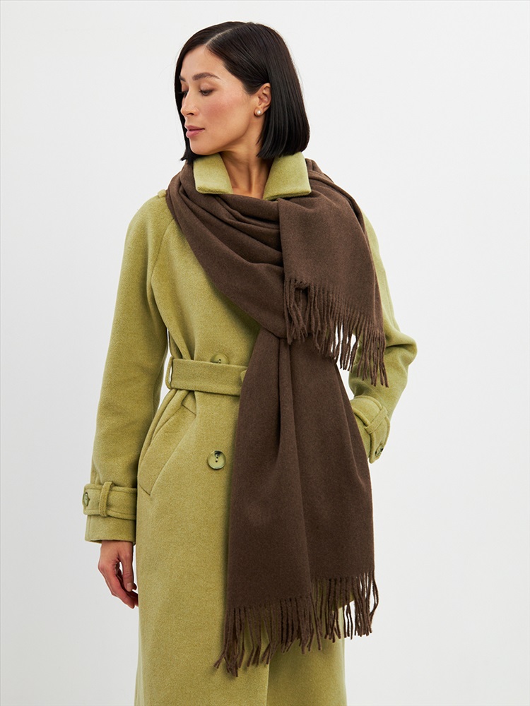 Цвет: Коричневый Состав: Вискоза, Шерсть, Кашемир Состав: Кашемир 25% Шерсть 20% Вискоза 55% Принт: Однотонный Размер: 180 x 70 см Большой, мягкий, теплый двусторонний однотонный палантин. Края изделия украшены кистями. Машинная деликатная стирка. Комментарии к товару
