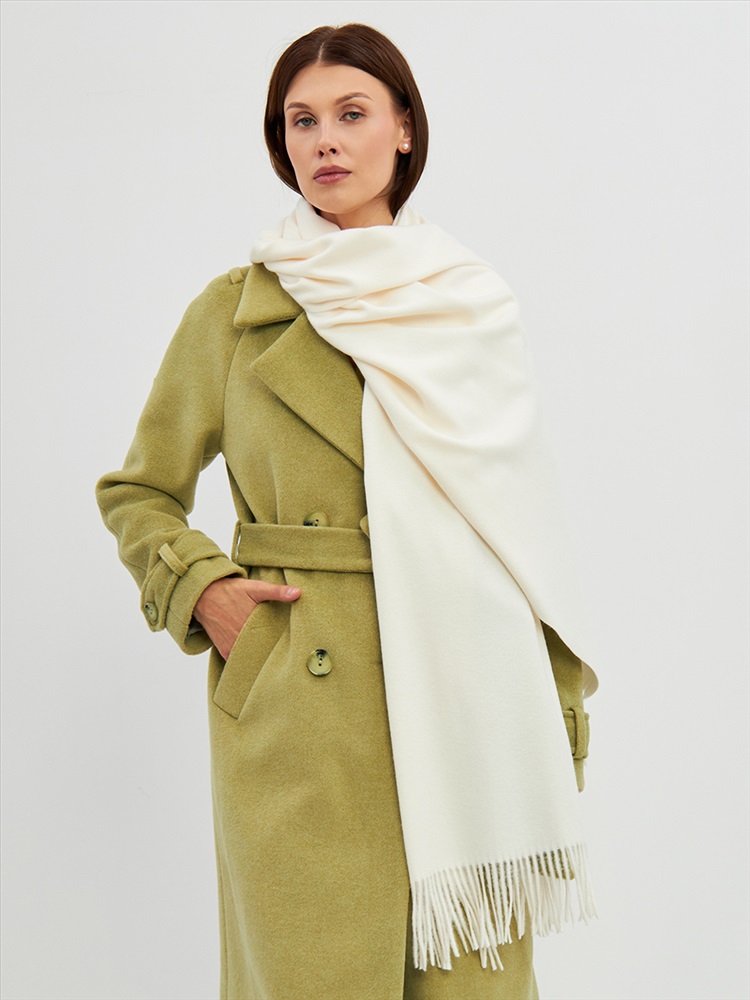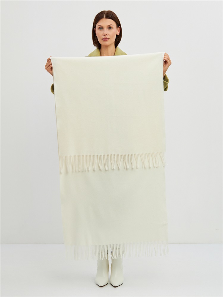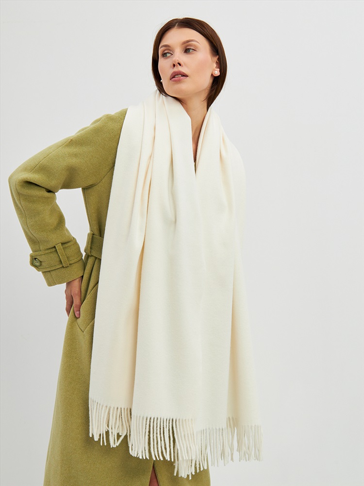 Большой, мягкий, теплый двусторонний однотонный палантин. Края изделия украшены кистями. Машинная деликатная стирка.