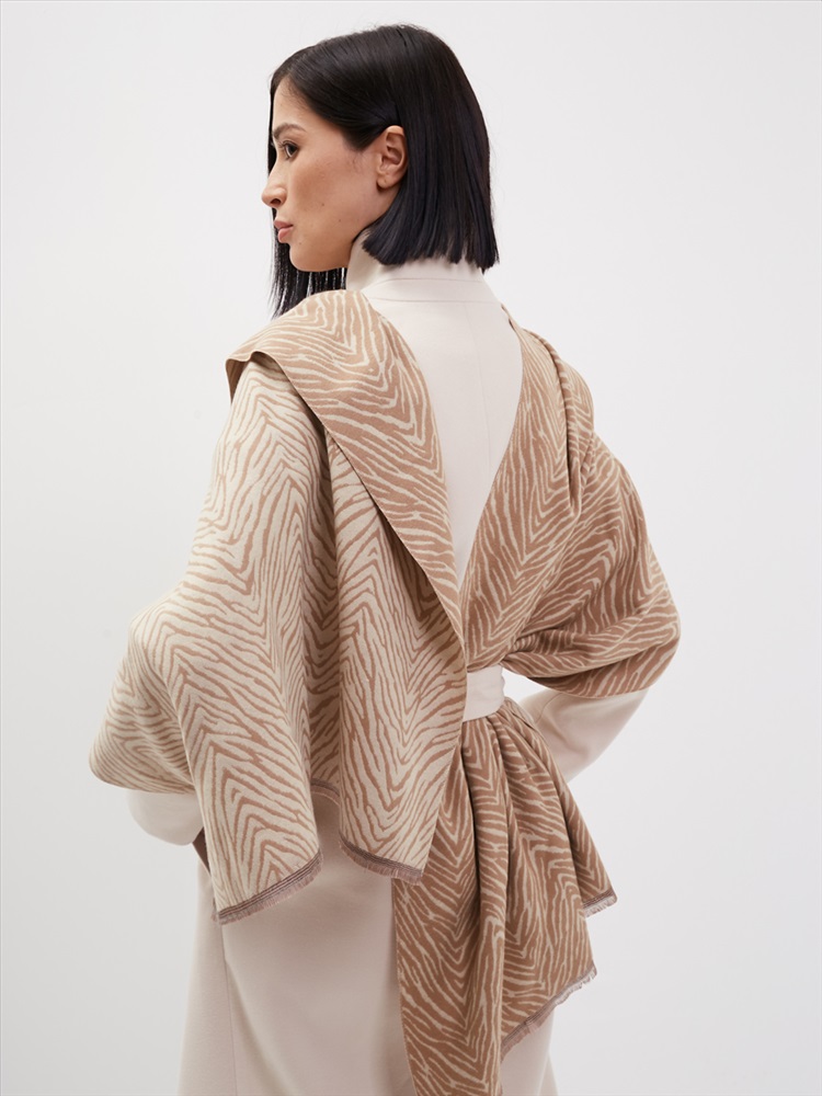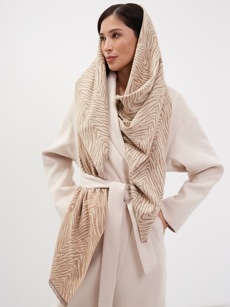Большой, мягкий, теплый двусторонний палантин с принтом. Края изделия украшены кистями. Только ручная стирка.