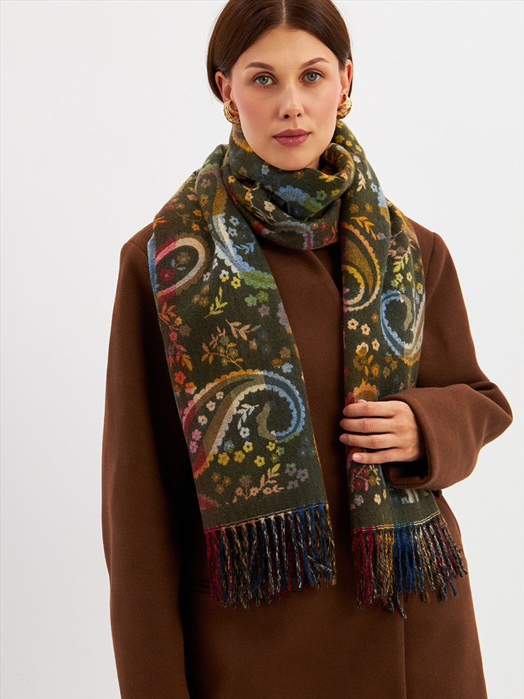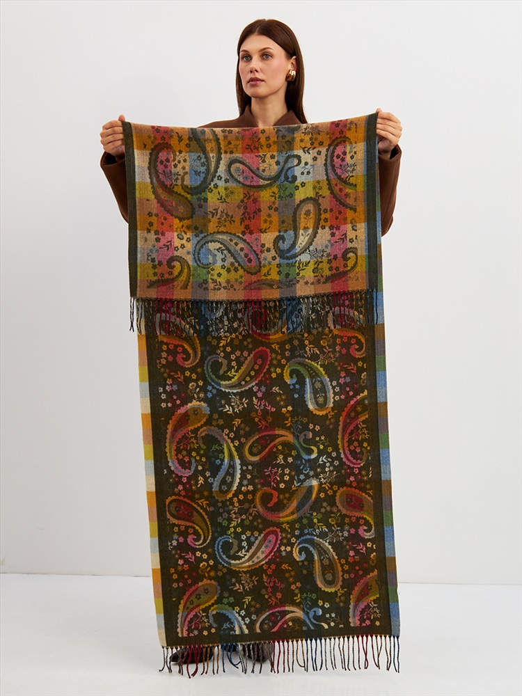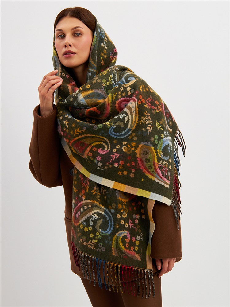 Принт: Абстракция Большой, мягкий, тонкий и очень нежный палантин с рисунком. Края изделия украшены бахромой ручной работы. Машинная деликатная стирка.