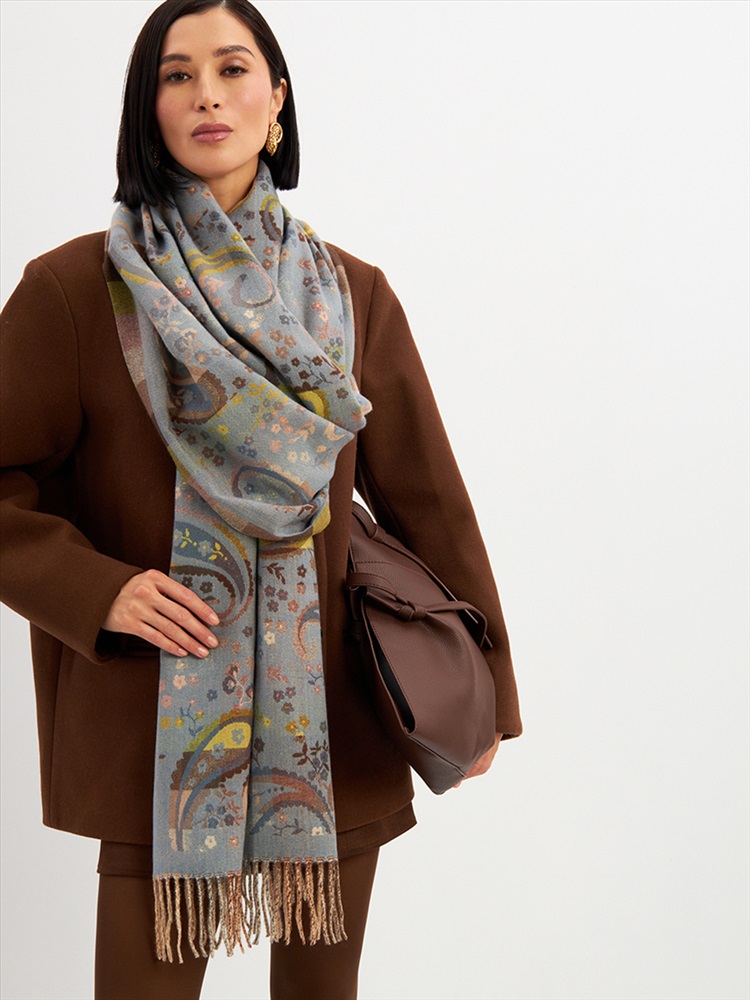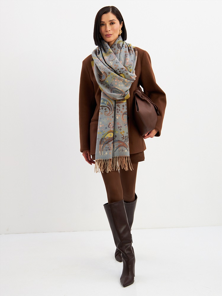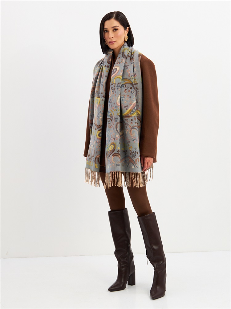 Цвет: Желтый, Коричневый, Серый Состав: 55% вискоза, 25% кашемир, 20% шерсть Состав: Вискоза, Шерсть, Кашемир Размер: 70 x 180 см Принт: Абстракция Большой, мягкий, тонкий и очень нежный палантин с рисунком. Края изделия украшены бахромой ручной работы. Машинная деликатная стирка. Комментарии к товару