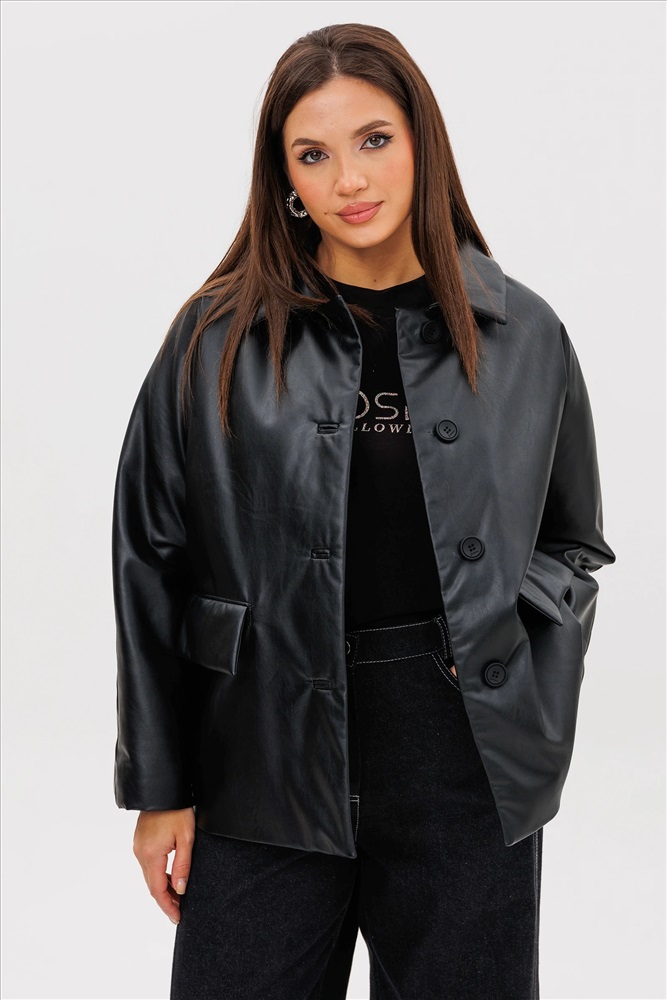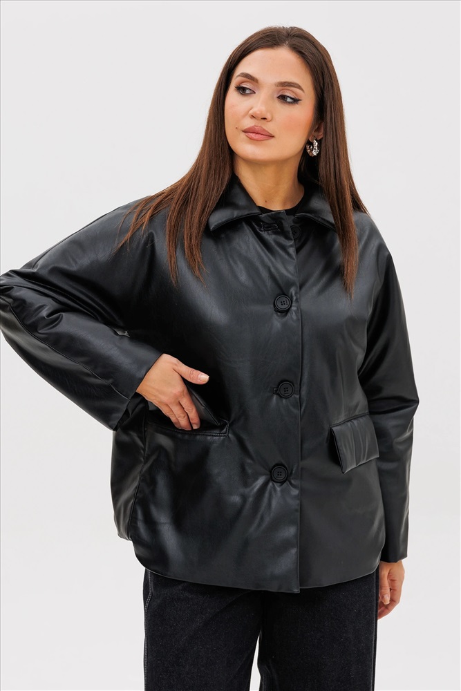 Стильная женская куртка из мягкой экокожи — это современное решение для прохладного сезона. Комбинированный покрой и лаконичный дизайн делают модель универсальной: она легко сочетается как с повседневными, так и с более строгими образами. Утеплённая подкладка на синтепоне дарит комфорт и тепло в межсезонье. Конструктивные особенности: Прямой силуэт, удобный для повседневной носки. Изготовлена из высококачественной экокожи с матовым блеском. Комбинированный крой: чёткие линии и аккуратные детали. Застёжка на крупные пуговицы спереди. Отложной воротник классической формы. Длинные рукава прямого кроя. Утеплённая подкладка на синтепоне, сохраняющая тепло. Боковые карманы с клапанами для удобства. Длина — до линии бёдер, универсальная для любого типа фигуры. Преимущества: Практичный чёрный цвет — легко сочетается с базовыми элементами гардероба. Стильный дизайн для города и активного дня. Тёплая, но лёгкая — отличный вариант для осени и ранней зимы. Состав: Верх: экокожа (полиуретан). Подкладка: полиэстер. Утеплитель: синтепон. Уход: Чистка влажной салфеткой. Не стирать в машине. Хранить на плечиках. Куртка: Пу 100% Комментарии к товару