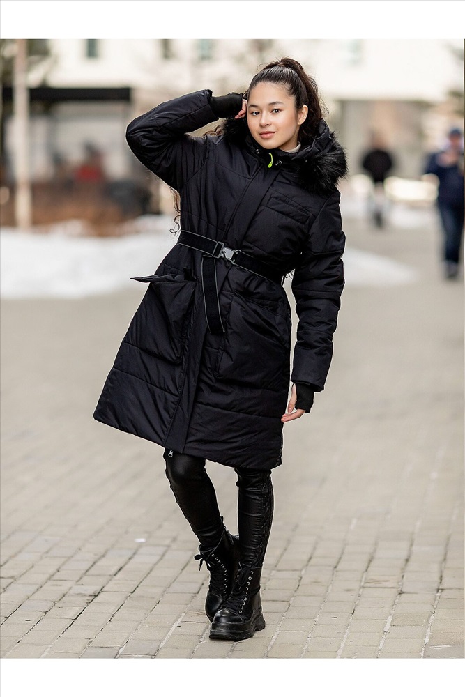 ID товара: 1127938 Состав: Ткань верха- 315T Dewspo (мембрана) / 290T Taffeta; Подклад- poly brushed / 210T Taffeta Сезон: Осень/Зима Длина: Удлиненная Фасон: Полуприлегающий Рукав: Длинные Вид застежки: Молния Тип карманов: Накладные Декоративные элементы: С капюшоном Утеплитель: с утеплителем, 300г/м2 Стиль: Повседневный Реком. темп. режим: до -35ºС Страна бренда: Россия Страна производства: Россия Утепленное стеганое зимнее пальто Амори для девочек. Застегивается на молнию и ветрозащитную планку, имеет накладные карманы-портфели с клапанами по бокам, капюшон на утяжках и со съемной опушкой. Также имеется специальный козырек. Утягивается пальто эластичным поясом, на груди карманы, декорировано яркими элементами фурнитуры, нашивкой и термотрансфером. Особенности: