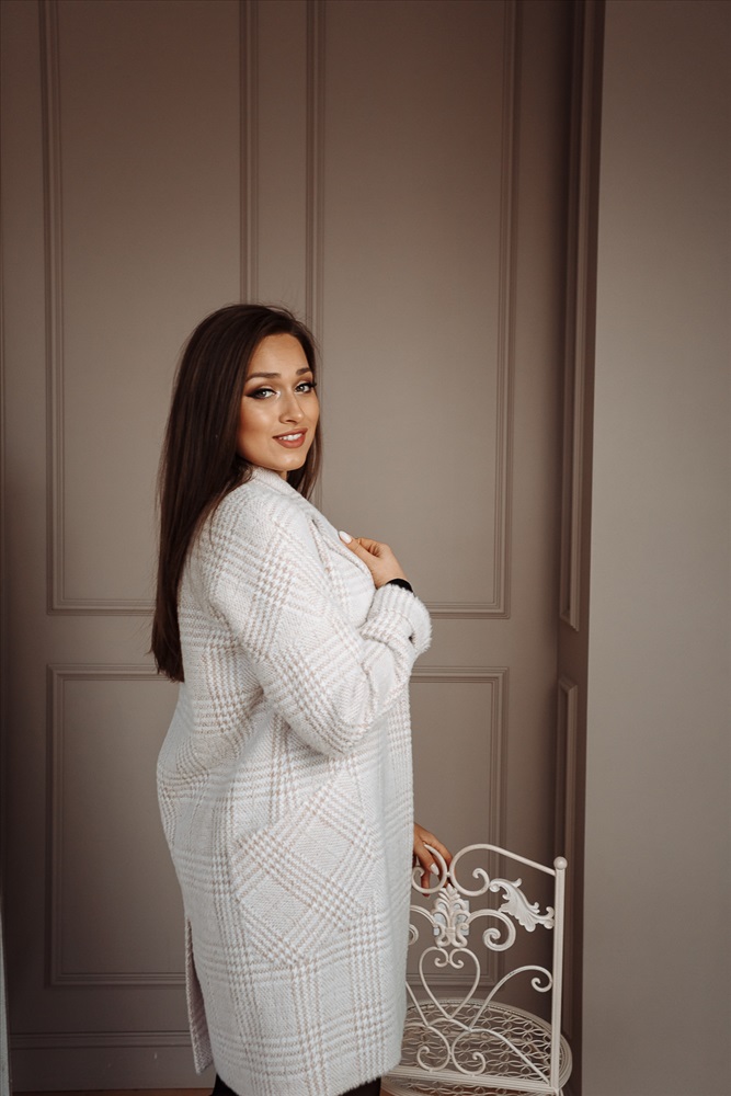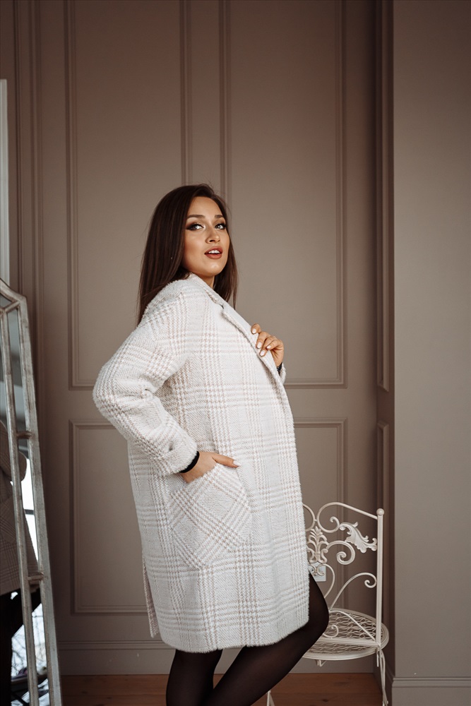 Материал: микроворса Цвет: беж./клетка Описание: Пальто женское демисезонное. Силуэт прямой. Воротник английский. Заход бортов 16см. Застёжка на 4 пришивные кнопки. Рукав со спущенным плечом. Карманы накладные. Пояс есть. Длина рукава 72 см. Длина изделия по спинке 93 см. Комментарии к товару