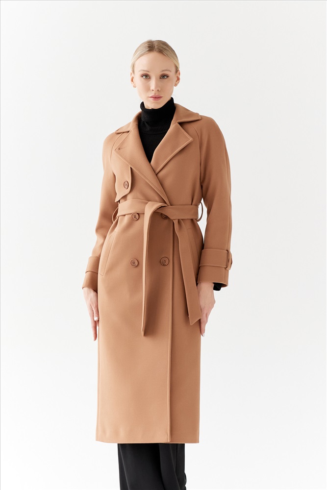 Материал: кашемир Цвет: кэмел Описание: Пальто женское демисезонное Силуэт прямой. Воротник отложной с лацканами. Рукав - реглан. Сзади шлица. Пояс есть. Длина изделия-120см. Длина рукава от горловины 73 см. Комментарии к товару