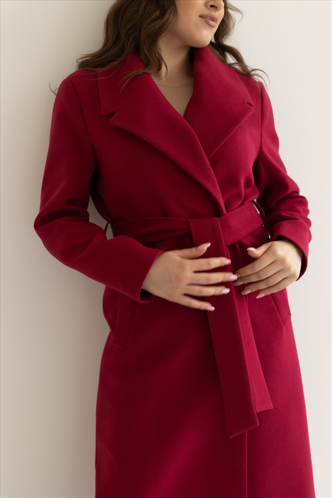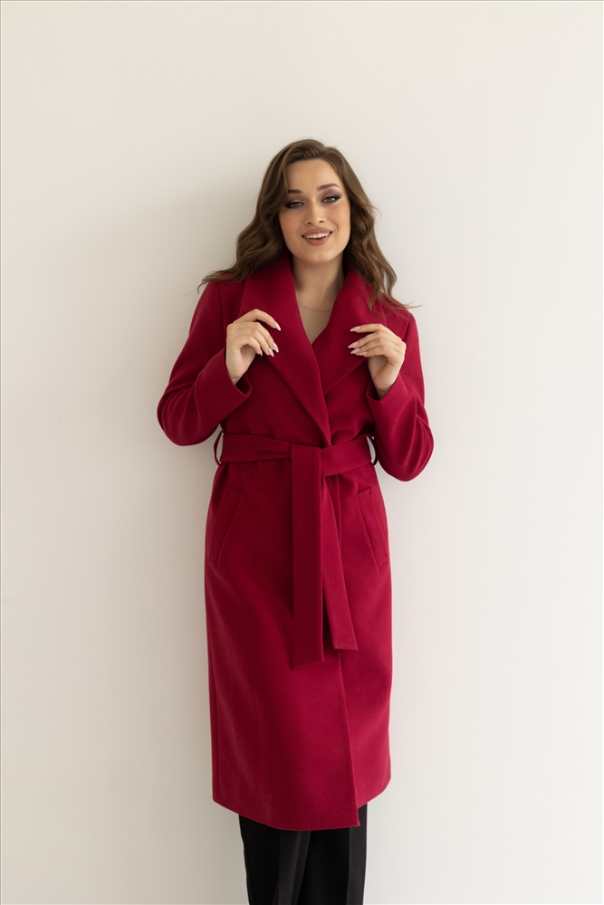 Материал: кашемир Цвет: вино Описание: Пальто женское демисезонное Силуэт прямой. Воротник отложной, большая фигурная "шалька". Рукав втачной с локтевым и передним швами. Застежка двубортная на 3 пришивные кнопки. Пояс есть. Длина рукава - 63 см. Длина изделия по спинке - 109 см. Комментарии к товару