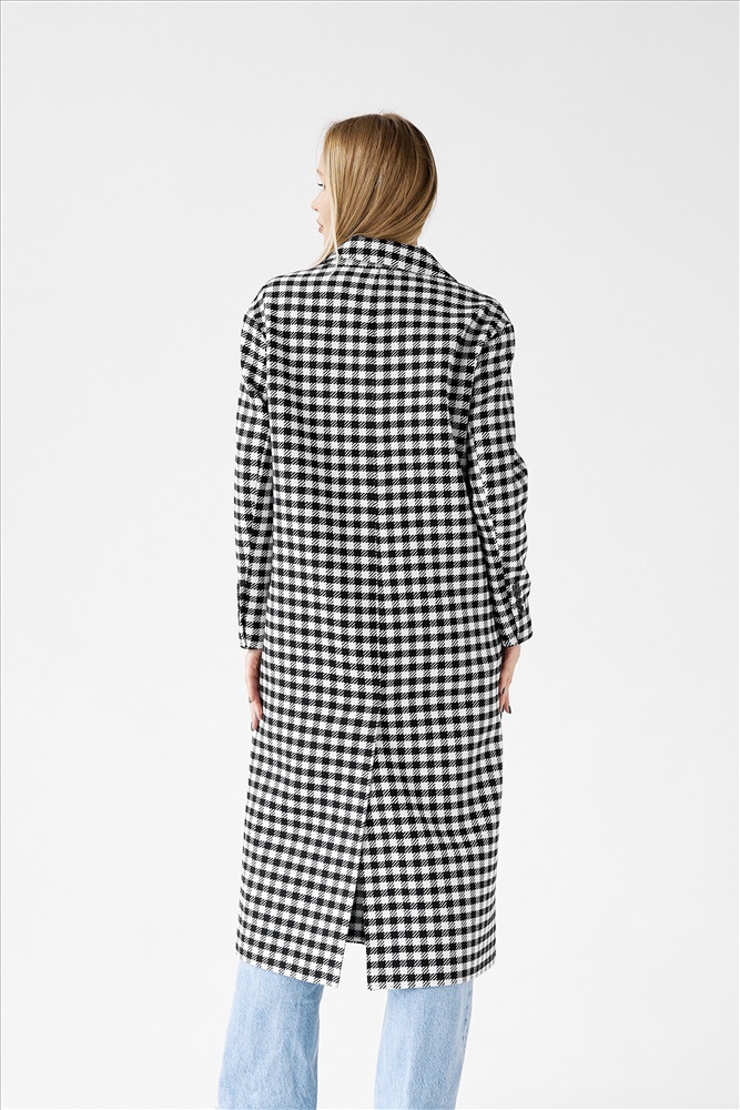 Модель: 24102 Материал: твид Цвет: клетка Амалия Состав: 70% шерсть, 30% полиэстер Параметры модели: 86-62-92, 176 Размер на модели: 42