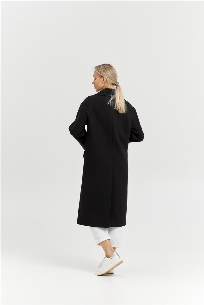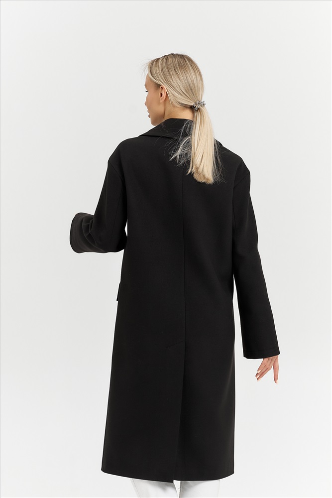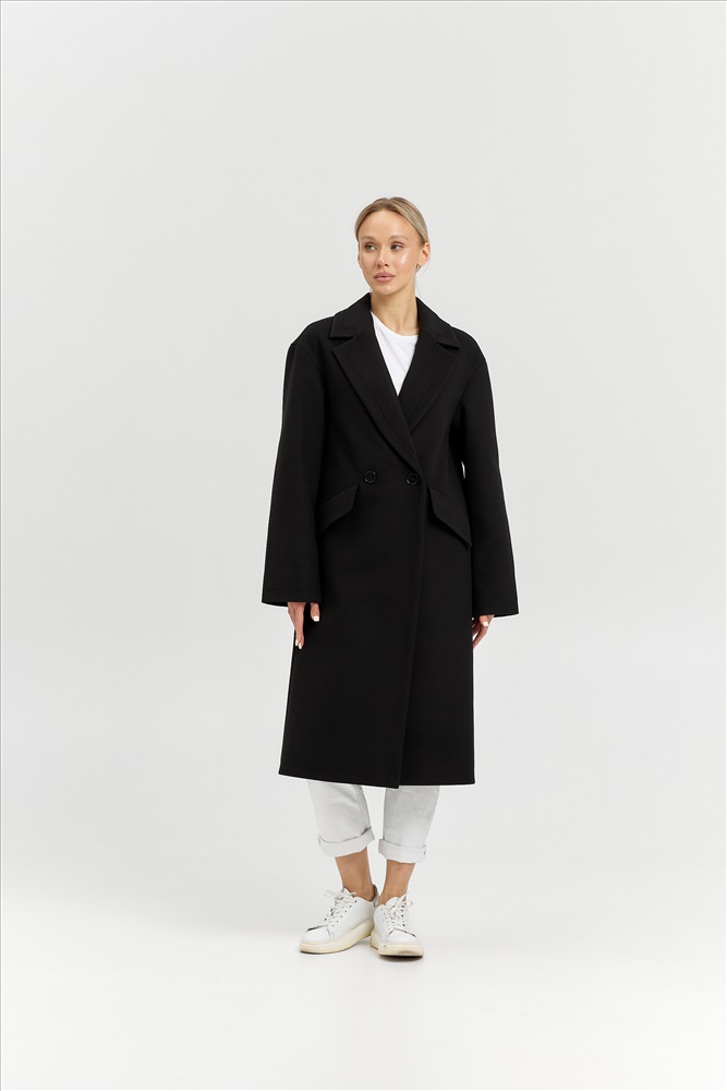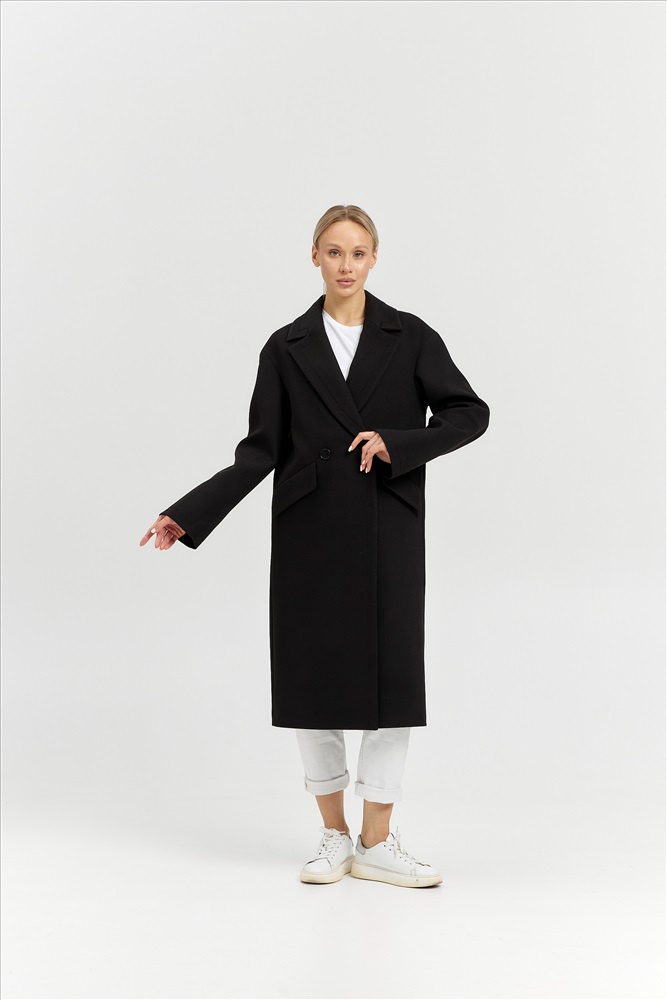 Материал: кашемир Цвет: черный Состав: 70% шерсть, 30% полиэстер Описание: Пальто демисезонное Застёжка – двубортная, два ряда пуговиц 2шт + 1полудержатель + кнопка потайная (пришивная). Боковой карман - втачная листочка с клапаном. Рукав – спущенный с отворотом внизу. Воротник – отложной с лацканами. Длина по спинке от ростка – 115см. Комментарии к товару