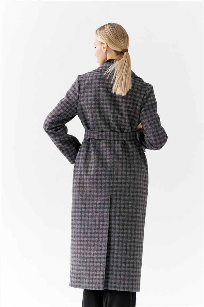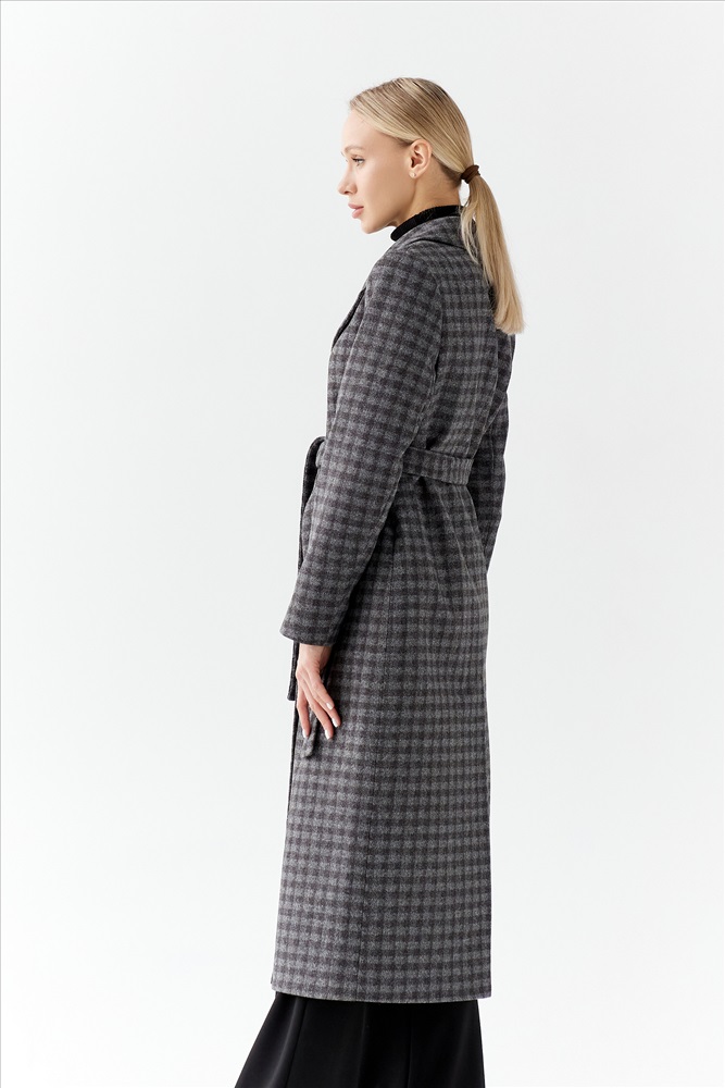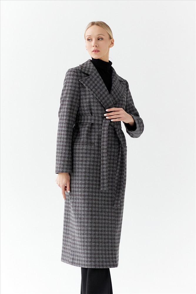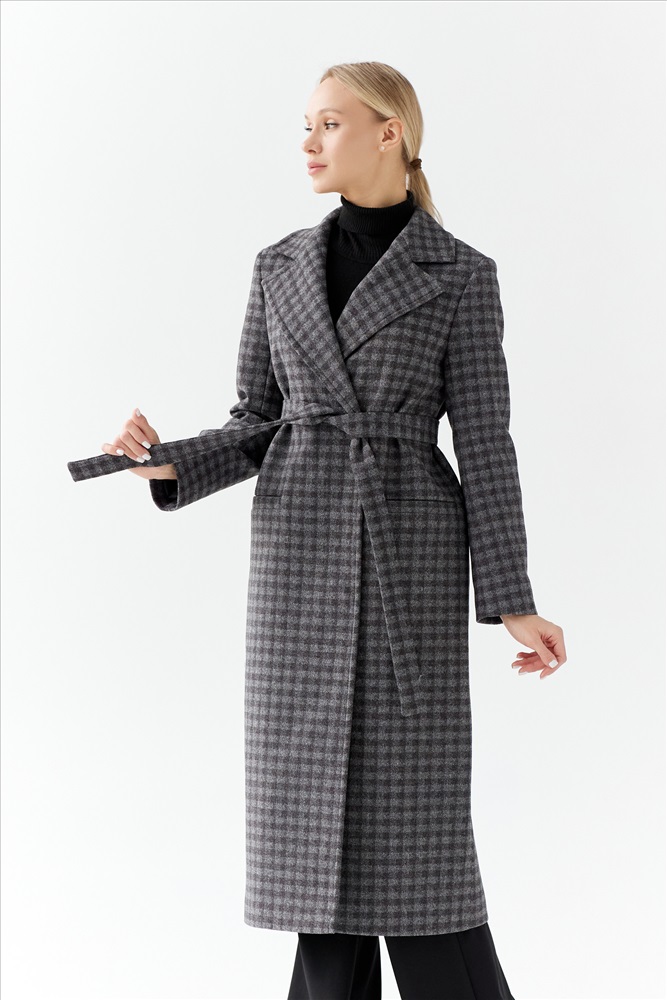 Материал: Ворсовая ткань Цвет: черно-серый Параметры модели: 86-62-92, 176 Размер на модели: 42 Описание: Пальто женское демисезонное. Силуэт прямой с втачным рукавом. Воротник английский. Рукав 2-шовный втачной. Застёжка на 4 пришивные кнопки. Длина рукава с плечом 70 см. Длина изделия по спинке 120 см. Комментарии к товару