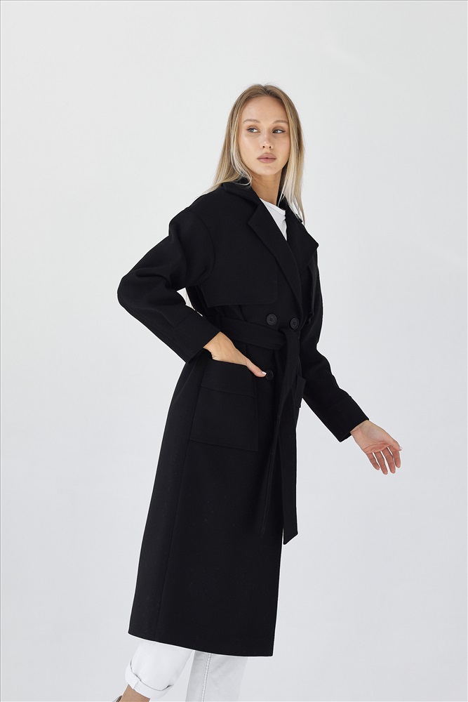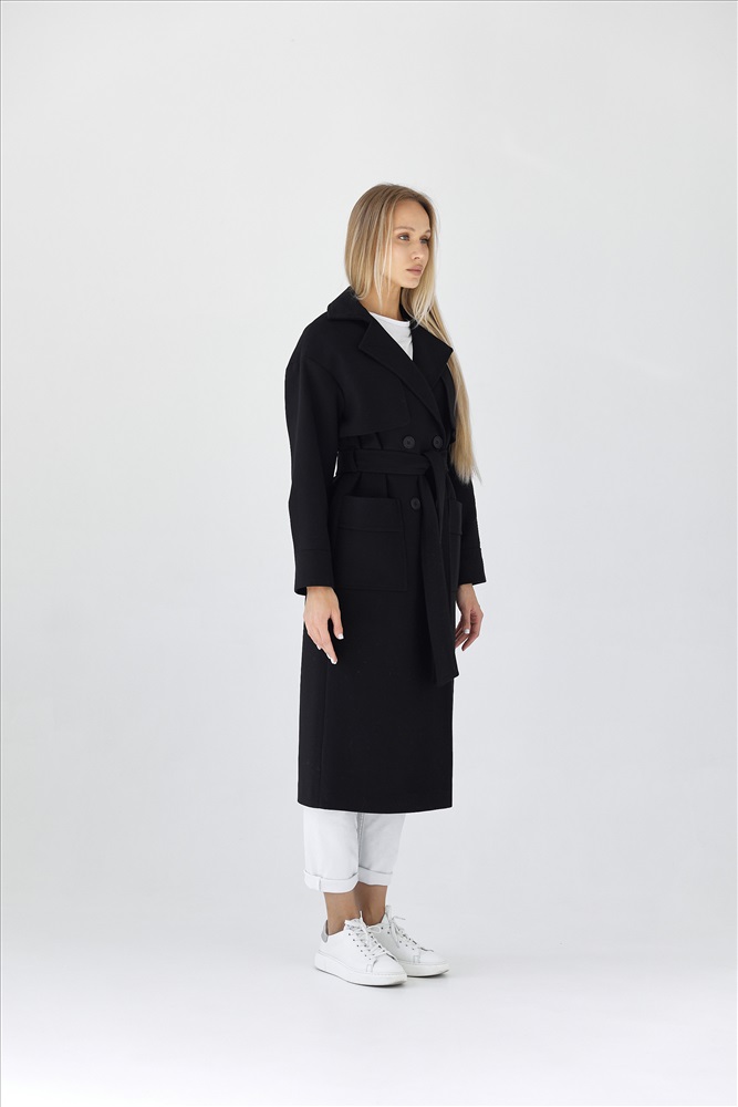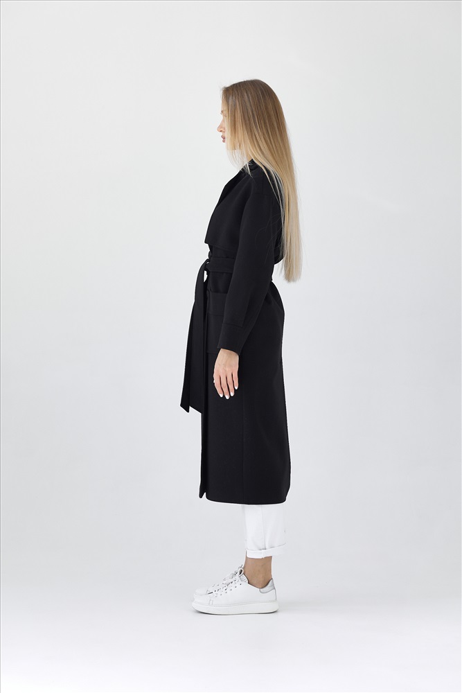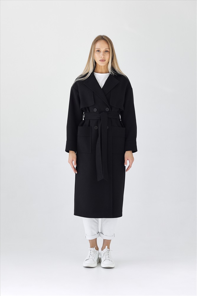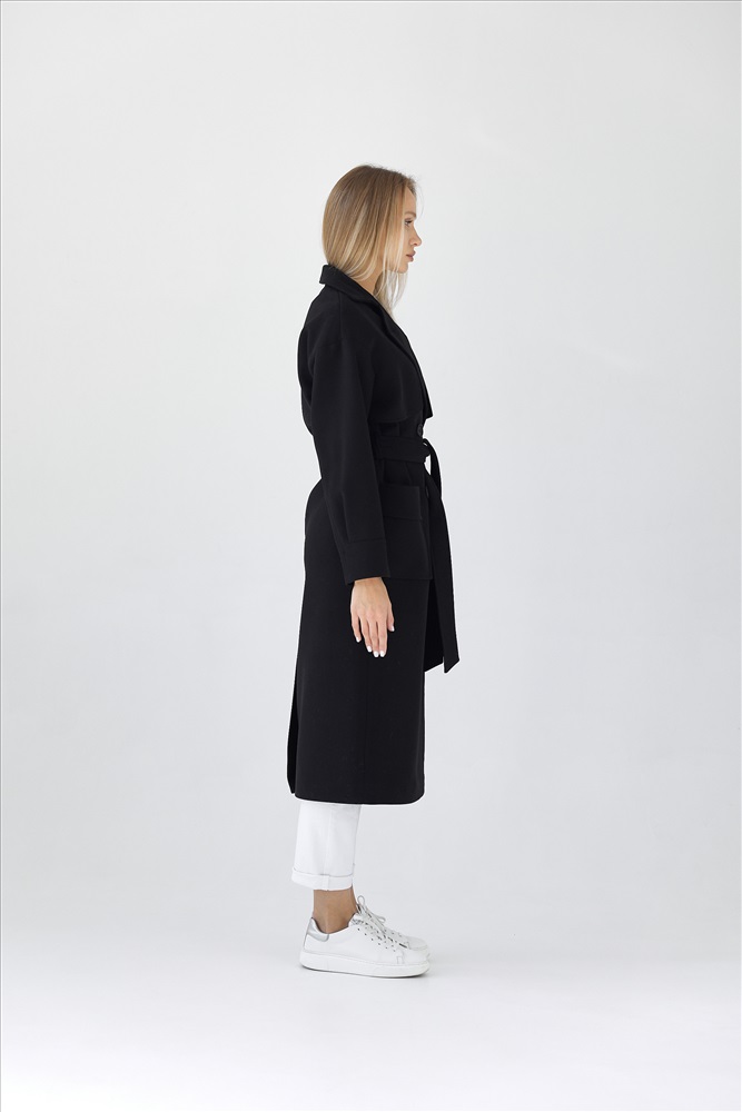 Материал: кашемир Цвет: черный Состав: 70% шерсть, 30% полиэстер Описание: Пальто умеренного объёма, оверсайз. Полочка – без вытачек со спущенным плечом и отлетными кокетками. Карманы накладные. Спинка – со средним швом, который заканчивается шлицей. Рукав – умеренного объёма со складкой на манжете и со спущенным плечом. Воротник – отложной на стойке с лацканами. Длина по спинке от ростка – 120см. Длина рукава от горловины – 73см. Комментарии к товару