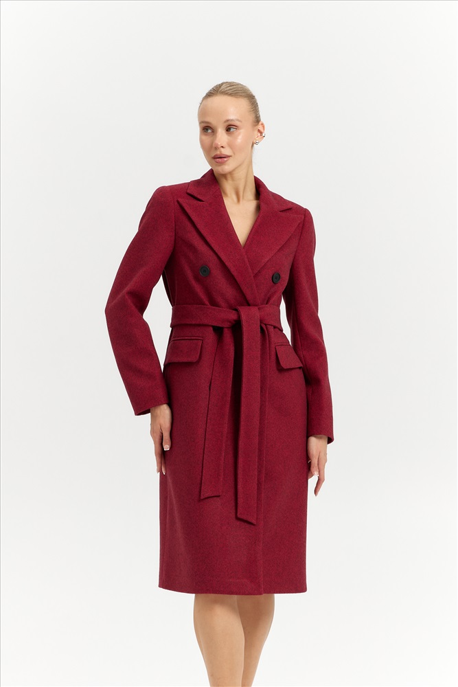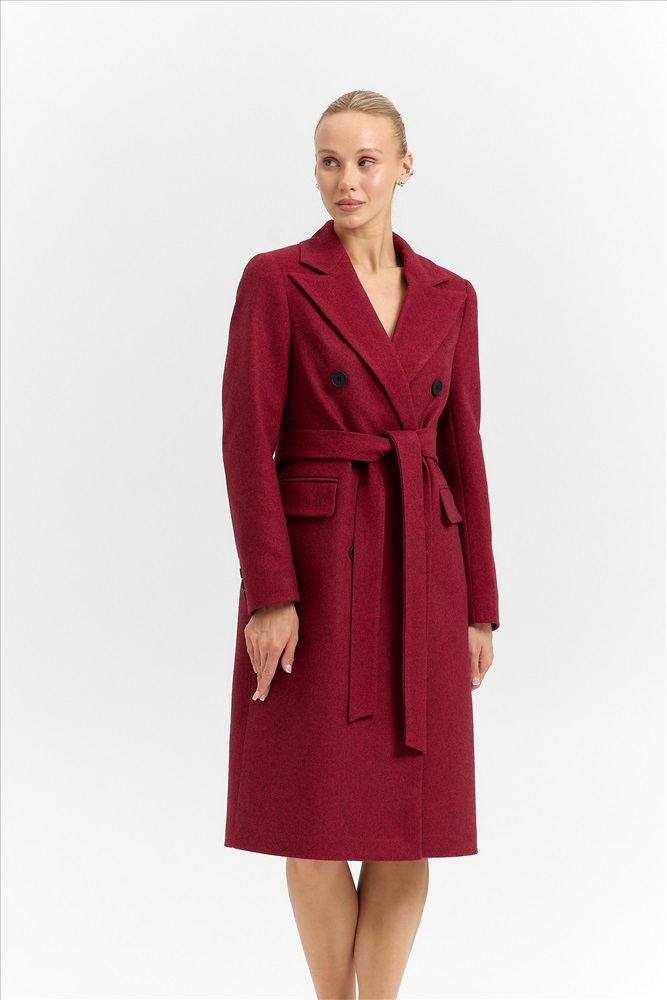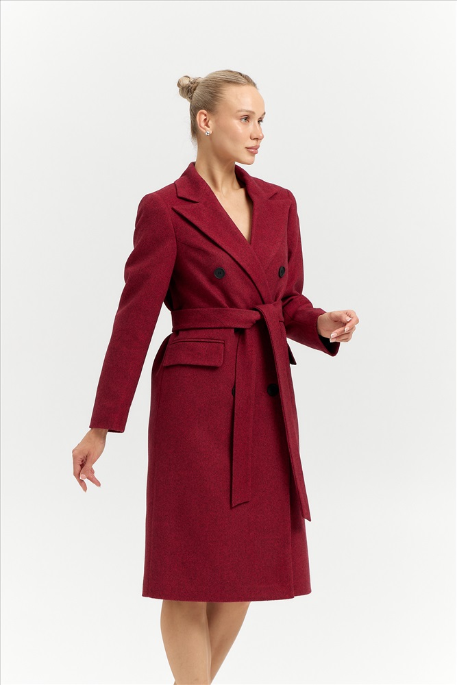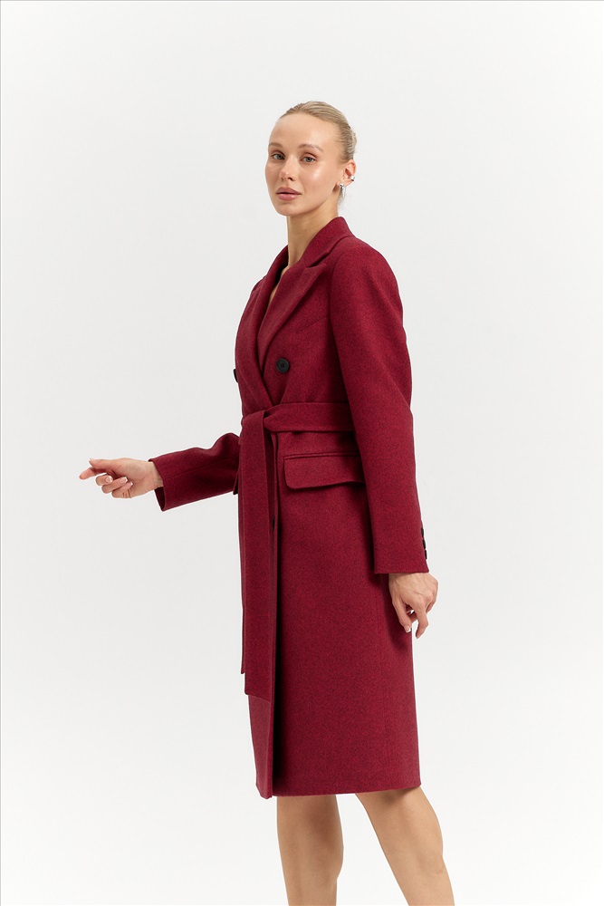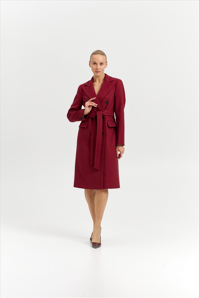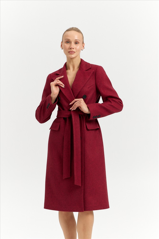 Модель: 25775 Материал: рубчик Цвет: бордовый/ёлочка Состав: 70% шерсть, 30% полиэстер Размер на модели: 44